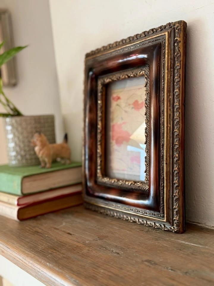 Vintage Ornate Frame Art - Faux Burl-Wood Finish & Gold Molding