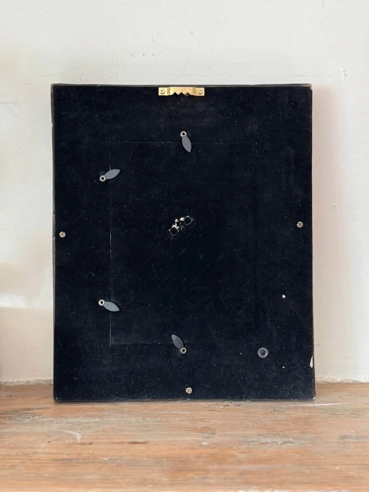 Dimensions: 11” H x 9” W x 1.25” D. Finish: Faux Burl-Wood Pattern & Antiqued Gold. Era: Circa 1990-2000.