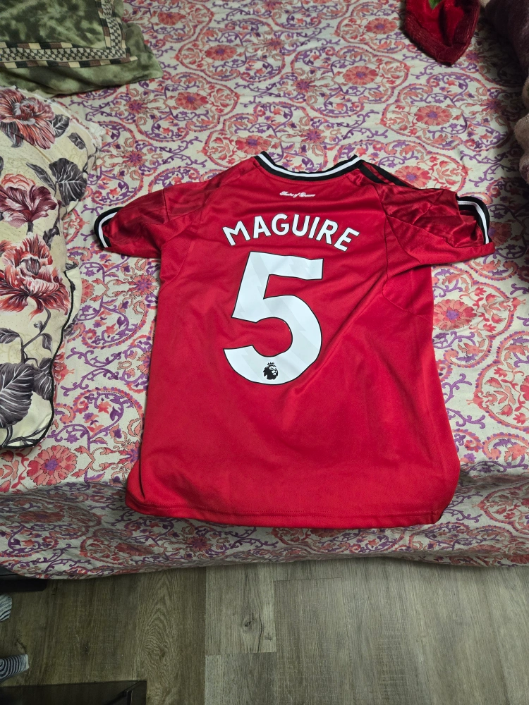 Selling a red Adidas Manchester United jersey with Maguire #5 on the back. It's in great condition and ready for a new fan!