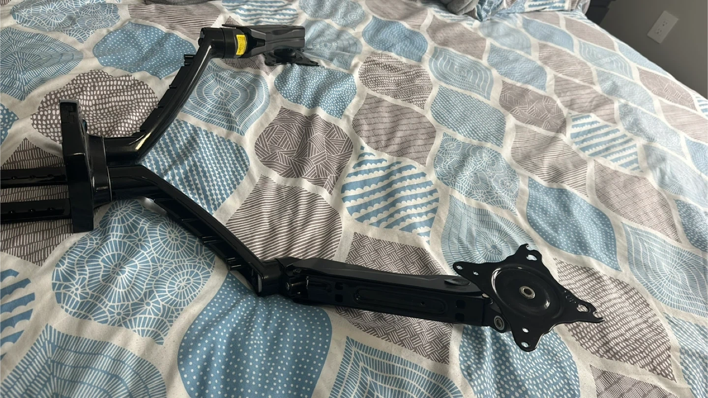 Selling a HUANUO dual monitor mount in black! It's in great shape and ready to help you optimize your workspace. This mount is perfect for creating an ergonomic setup and freeing up desk space. If you're looking to upgrade your workstation, this is a fantastic option