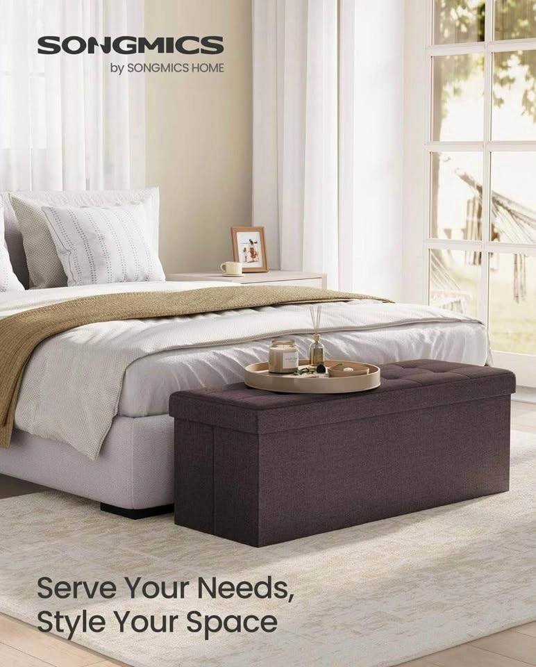 Stylish, practical, and super sturdy, this SONGMICS Folding Storage Ottoman Bench is perfect for any home. Use it as a footrest, extra seating, or storage chest in your living room, bedroom, or entryway. Brand new, never used, still in original box.