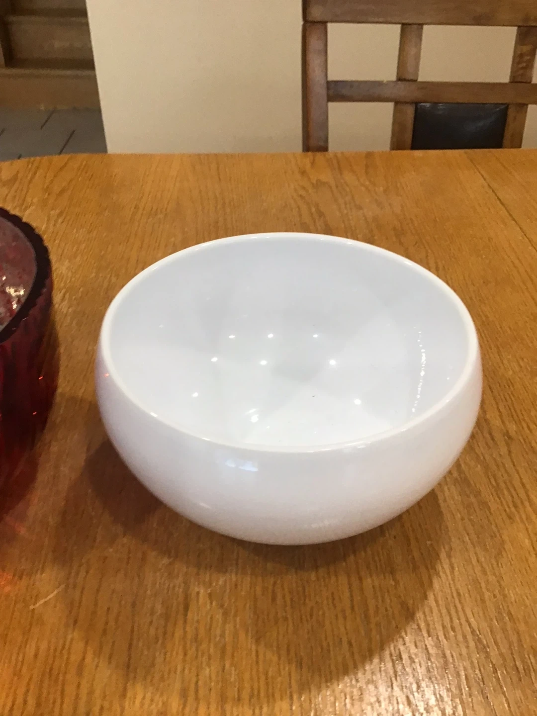 Decorative glass bowl in a vibrant red colour. Features a textured pattern and a slightly distressed interior finish.