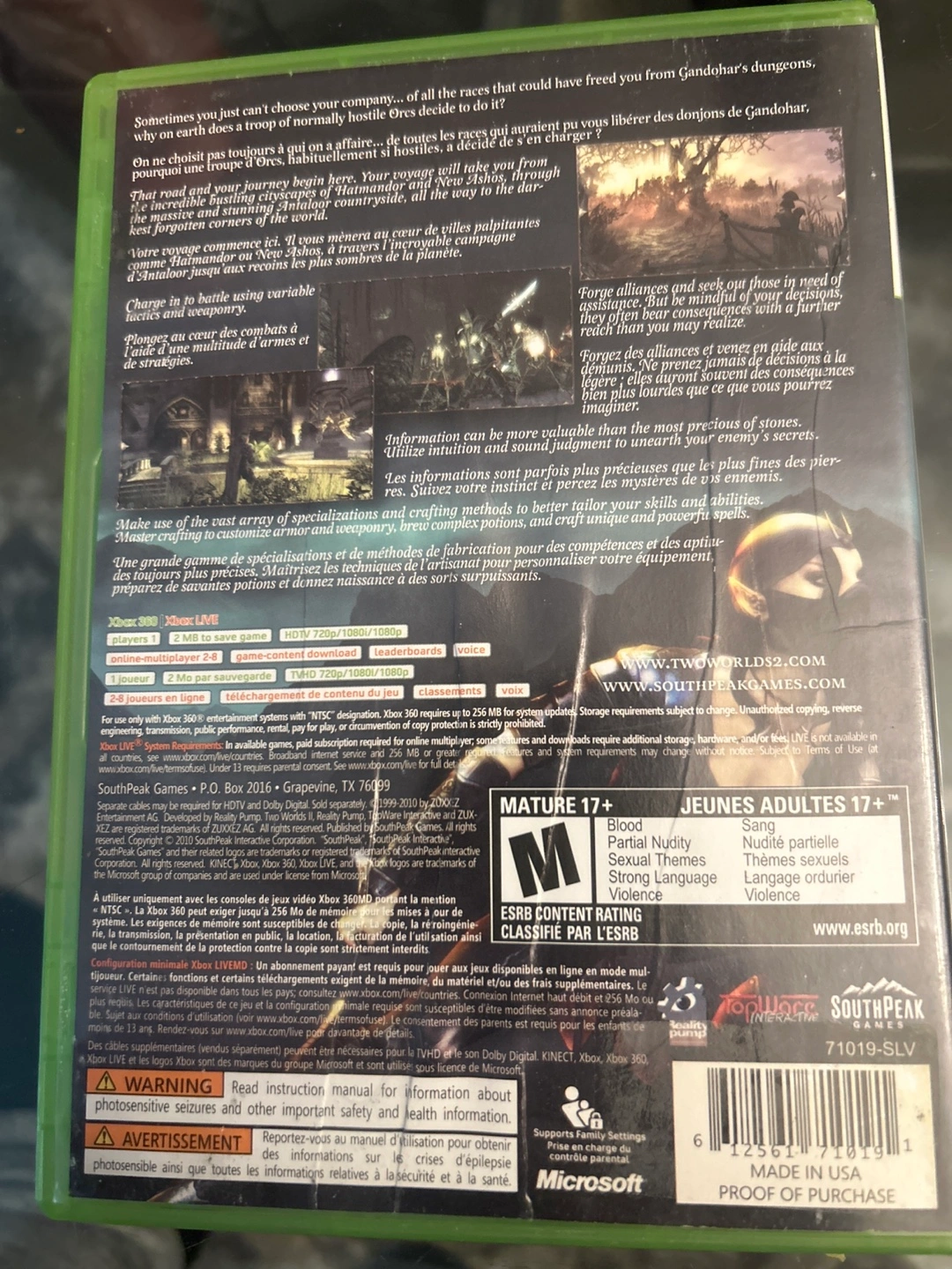 Buy & SellTwo Worlds II for Xbox 360Two Worlds II for Xbox 360$10Selling Two Worlds II for the Xbox 360! Pick up in Davisville Village. Cash only.ConditionGoodWHERE TO MEETCheck LocationView MapSELLERverifiedSteveDavisville Village1074 reviews0 chats·0 favorites·2 viewsSEND CHAT TO SELLERHi Steve! I’m interested in your listing.Hi Steve! I’m interested in your listing.Get the Karrot app to chatSign In to chat