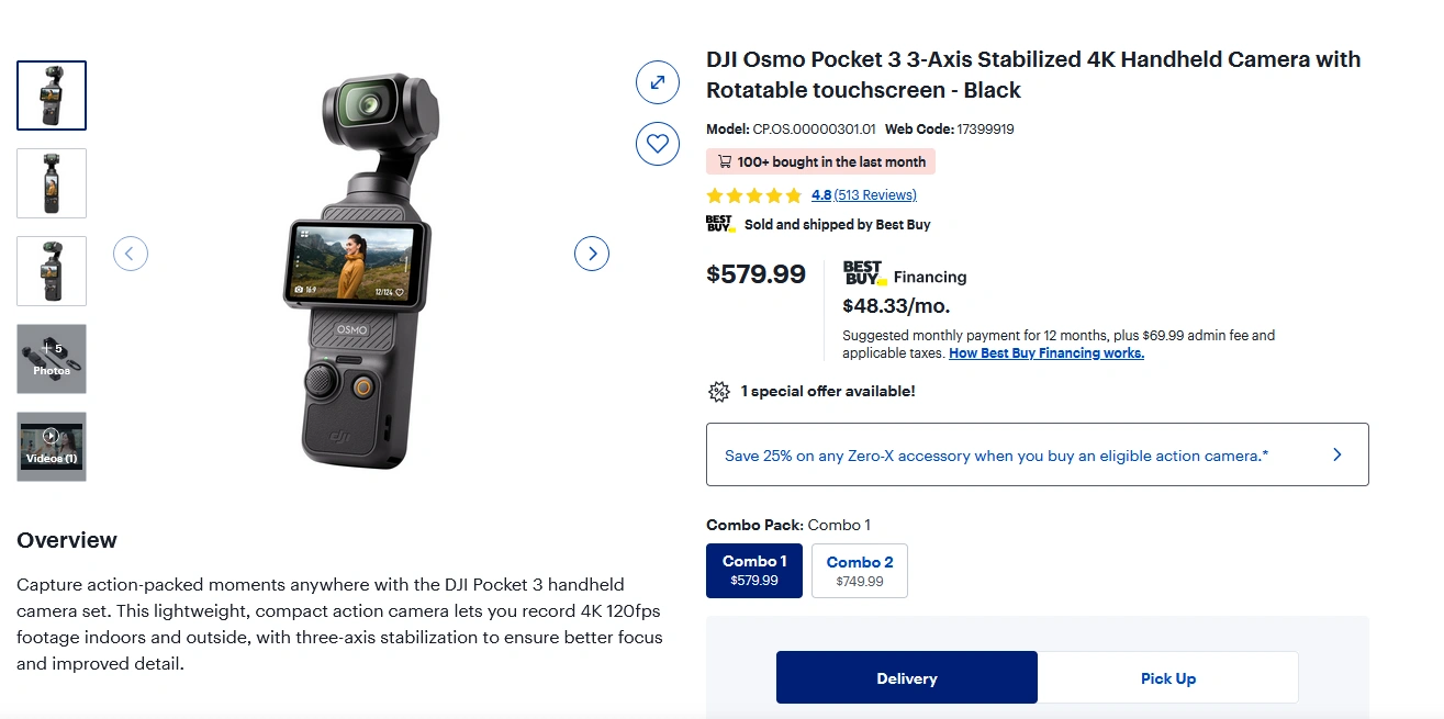 Selling a brand new DJI Osmo Pocket 3! This compact camera is perfect for capturing action-packed moments with its 3-axis stabilization and 4K video recording. It's lightweight and portable, making it great for both indoor and outdoor use. The box includes the protective cover, DJI wrist strap, Type-C cable, and manuals. Originally Price $579.99