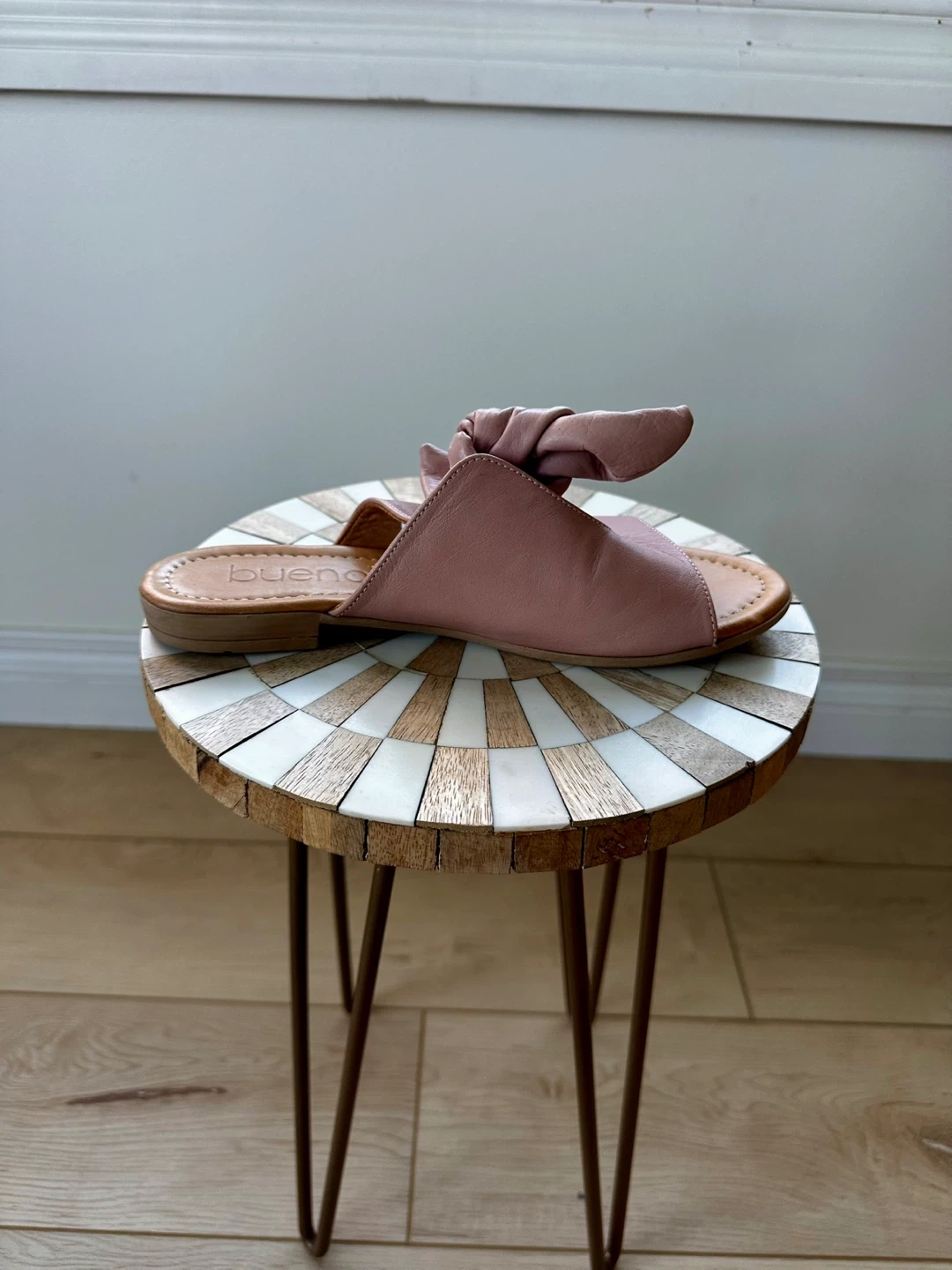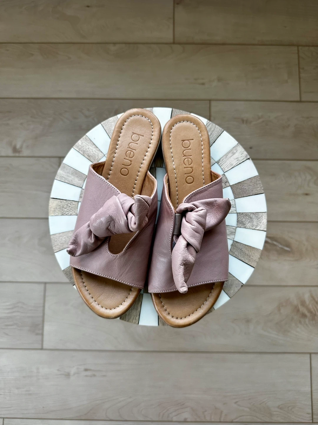 These are a pair of Bueno sandals in a lovely mauve/pink colour. They feature a stylish knot detail