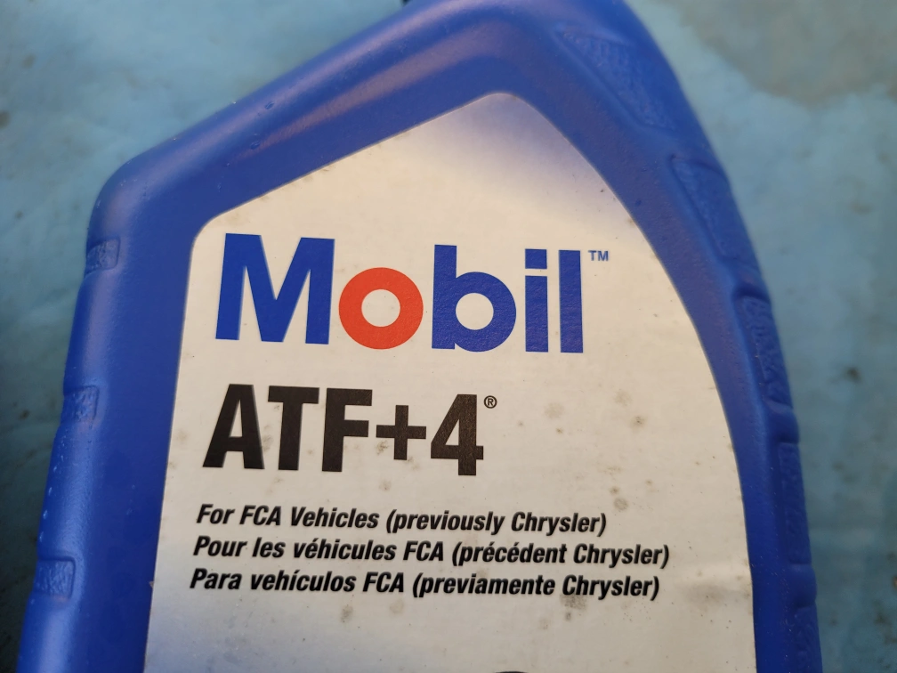 Two 1-litre bottles of Mobil ATF+4 Automatic Transmission Fluid. Synthetic blend fluid for FCA vehicles (previously Chrysler). Check your owner's manual for required type of ATF.
