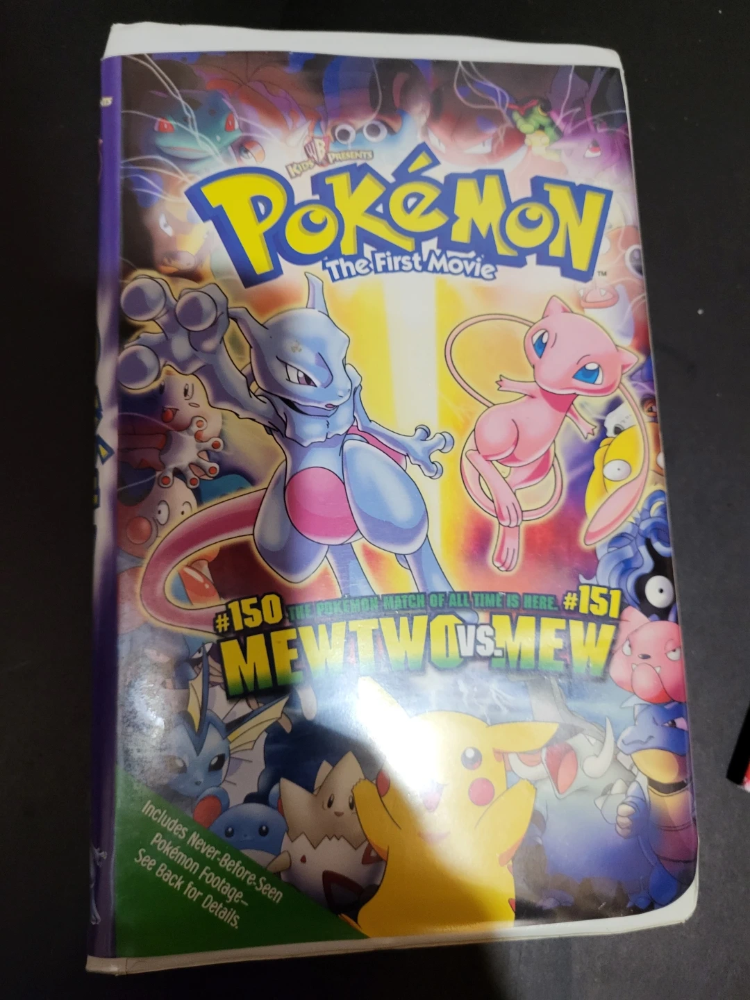 It's Pokemon The First Movie on VHS! Includes Mewtwo vs. Mew. The tape is housed in its original sleeve. Also, includes the sisters of cerulean city.
