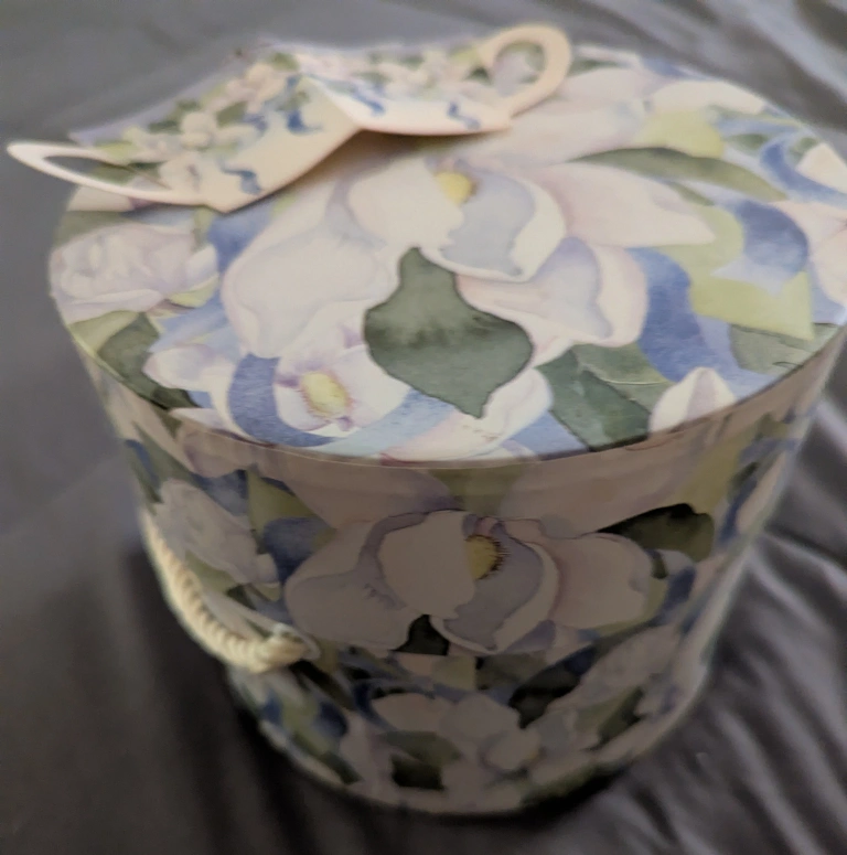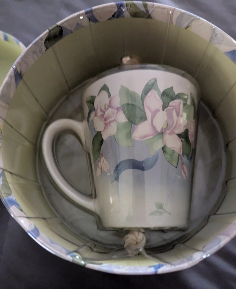 Selling a beautiful mug from Lady Jayne Ltd. It features a lovely magnolia design and comes with a matching lid. Perfect for enjoying your favorite hot beverage in style