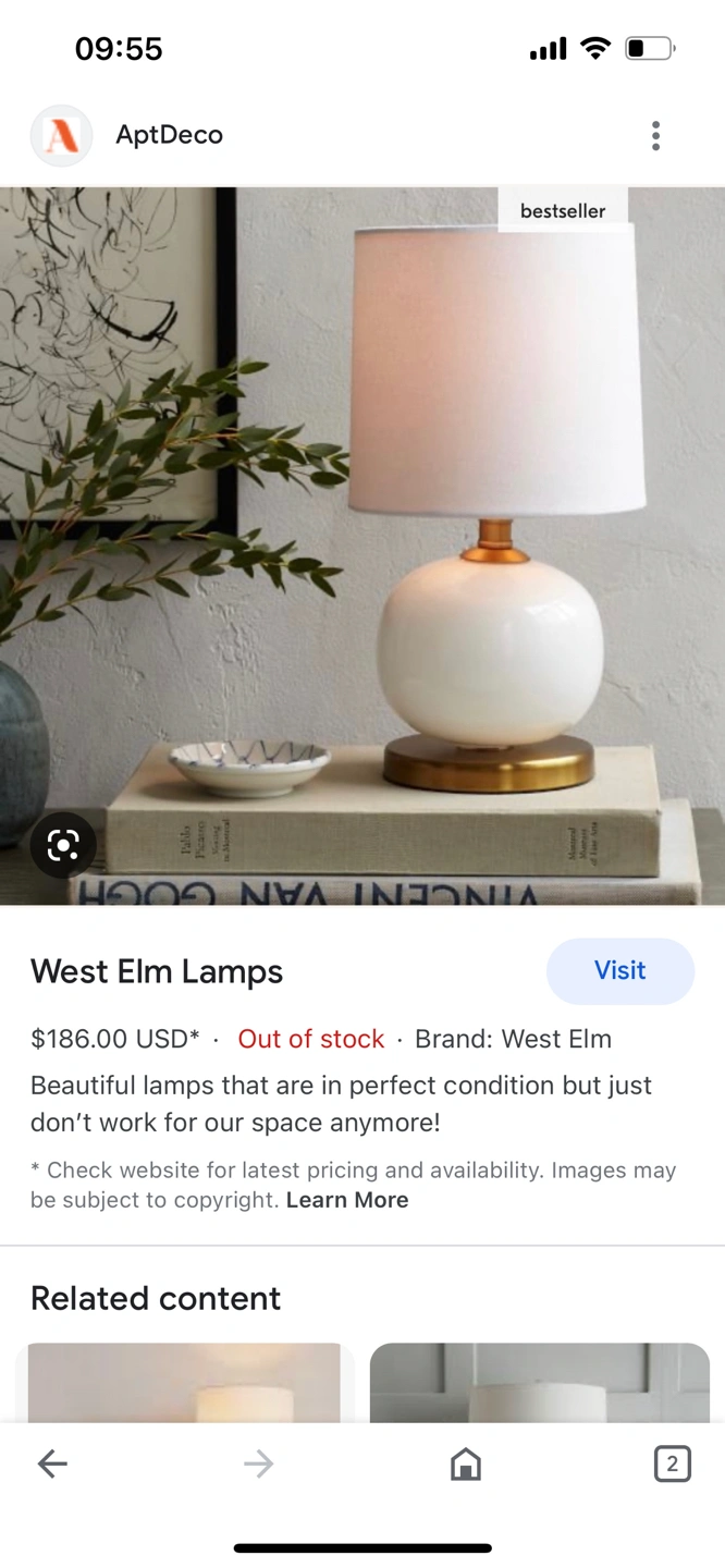 Moving sale. It’s a really stylish beautiful lamp but I cannot take it with me :( West Elm doesn’t have it anymore. And aptdeco price is 186 USD. I used it with a really good care it’s like new. Details are in the photos. Comes with one bulb.