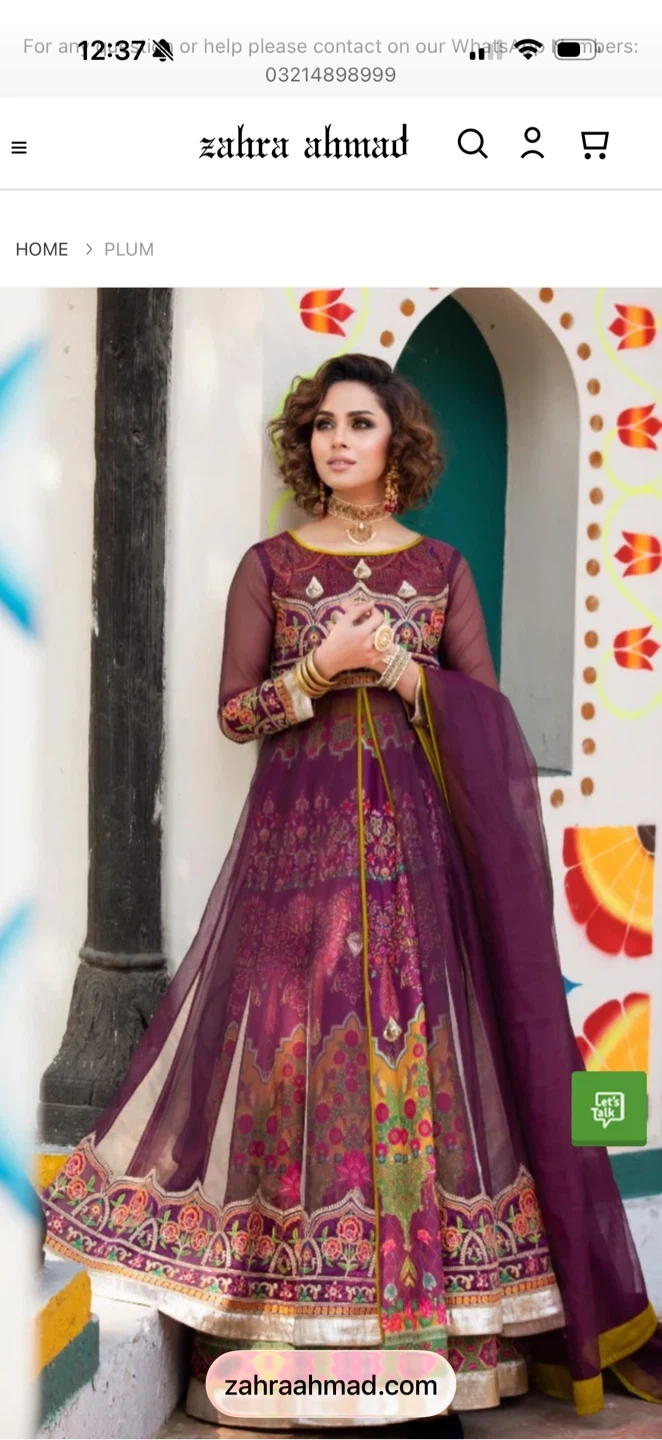 A beautiful Zahra Ahmad dress in a rich purple hue. Features intricate embroidery on the bodice and hem. Comes with a matching dupatta. Perfect for formal occasions or festive wear!