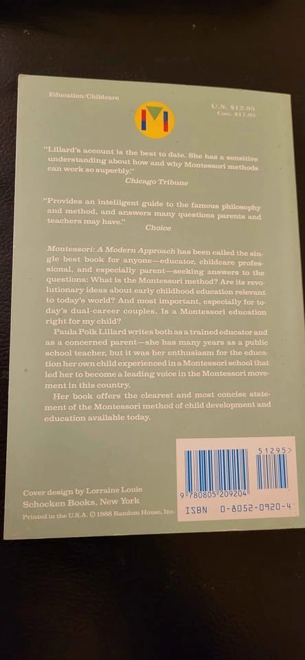 Informative books for anyone into Montessori! Got 'The Discovery of the Child' by Maria Montessori and 'Montessori A Modern Approach' by Paula Polk Lillard. Both great reads for learning about the method. $15 for both or $8 for 1.