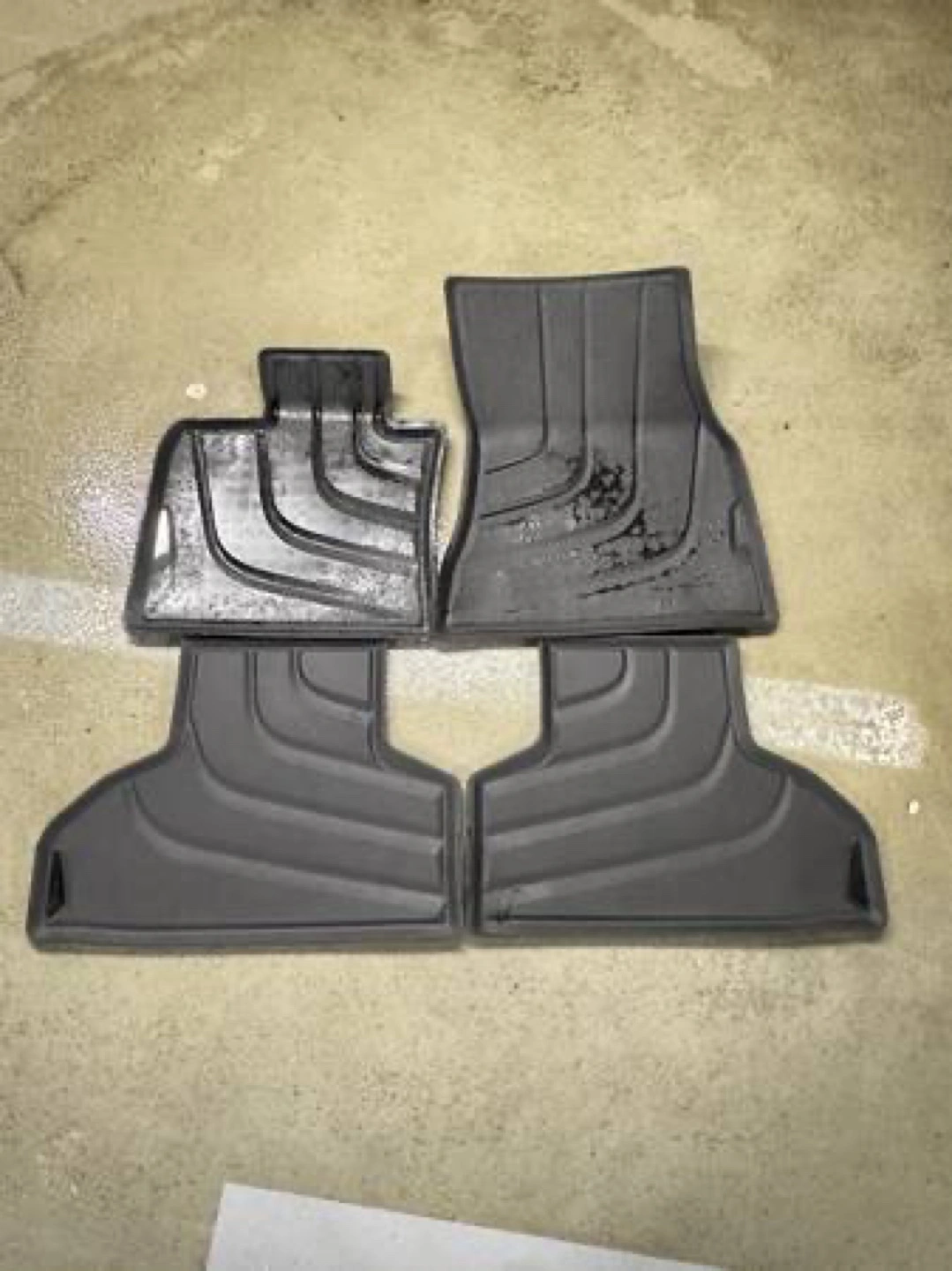 Only driver side piece shows usage. The passenger side and the rear two pieces are like new
