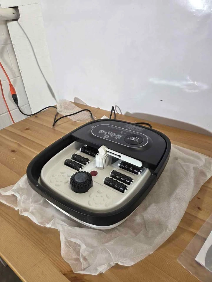 Brand new heated foot spa with adjustable temperature control. Shiatsu rollers massage soles to relieve foot fatigue. Bubble jets and infrared add soothing relaxation. Foldable design for easy storage at home. Great for daily use after work or long walks.