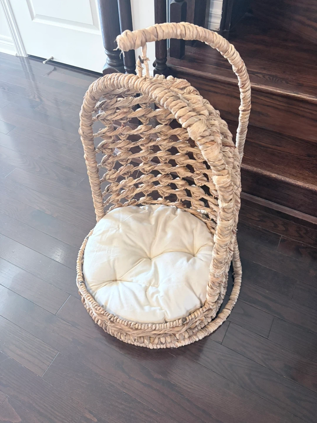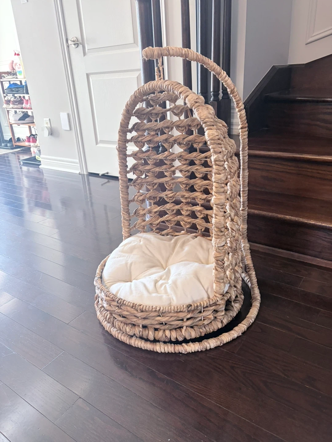 10Selling a cute wicker hanging pet bed! It comes with a comfy cushion. The bed is in great condition and would be perfect for a small dog or cat. Give your furry friend a cozy place to relax! Pick up in Aurora $50 OBO