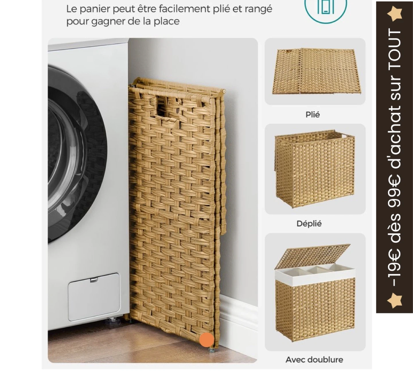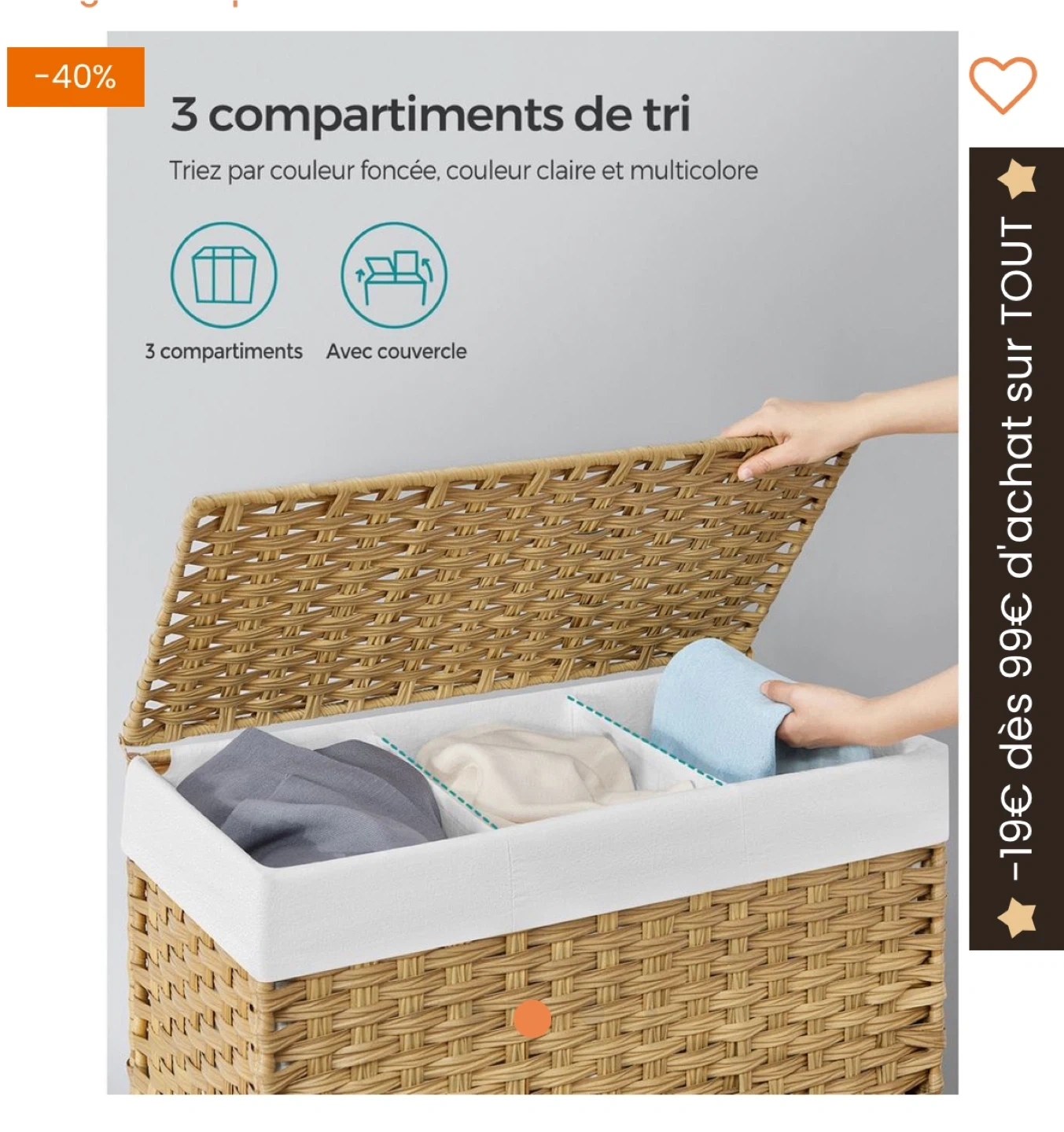 Wicker Laundry Hamper with 3 Compartments