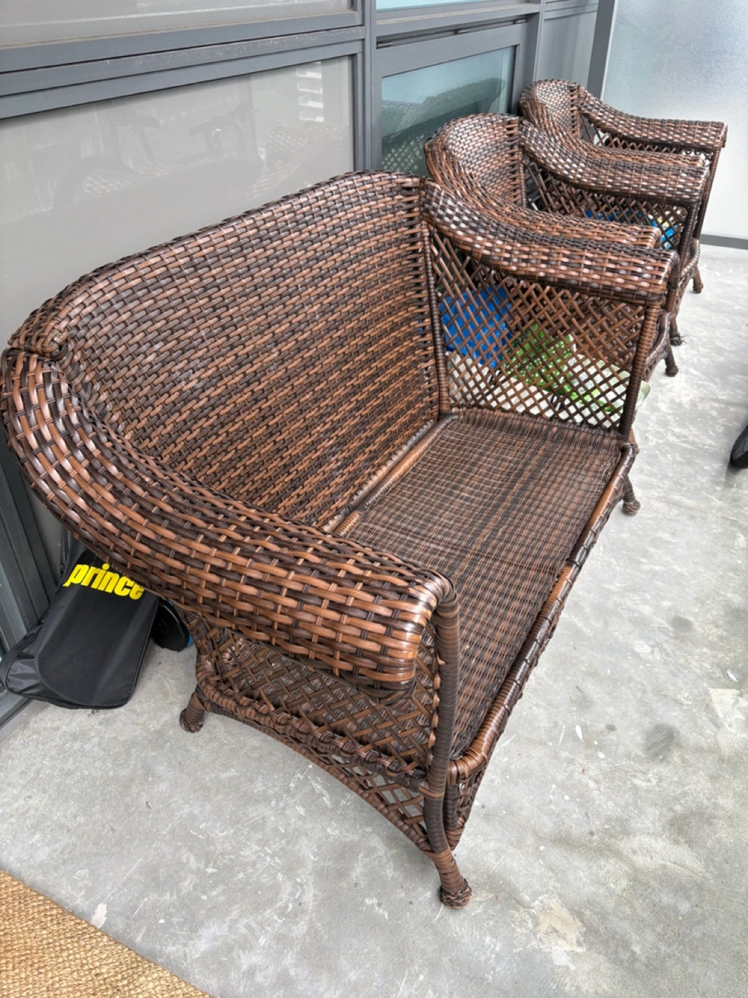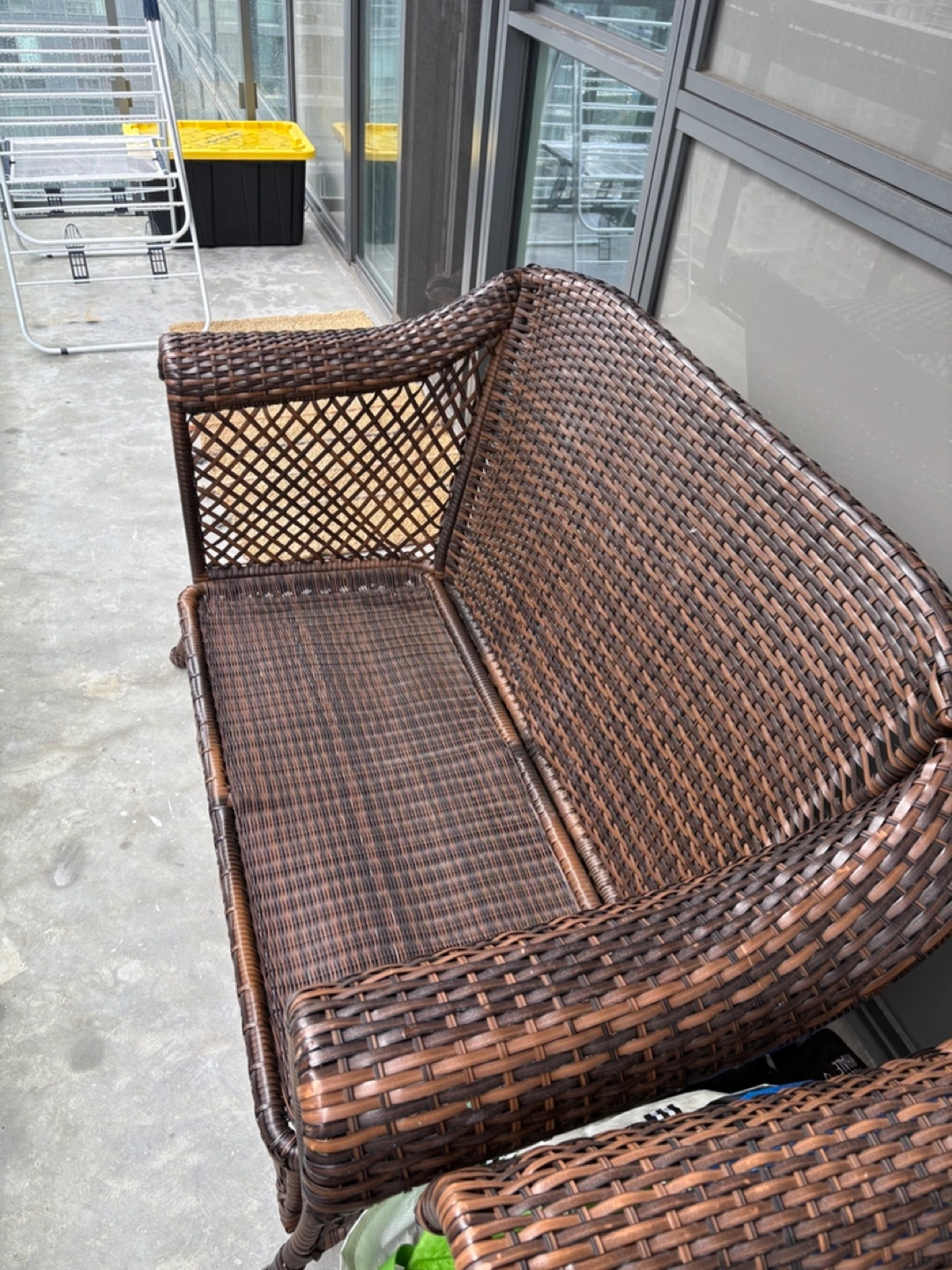 Looking to sell this wicker loveseat! Weather proof. Just the frame for sale, no cushions. It's in good condition and ready for a new home. The wicker material gives it a natural, relaxed look, ideal for enjoying those sunny afternoons or cozy evenings outdoors. OBO