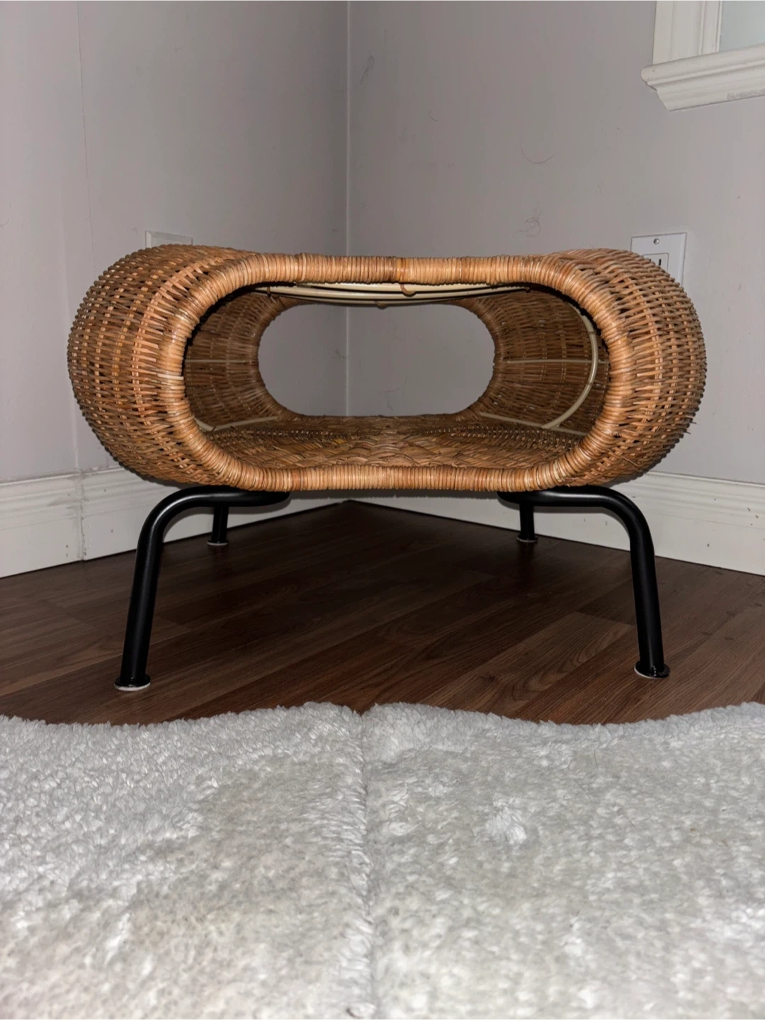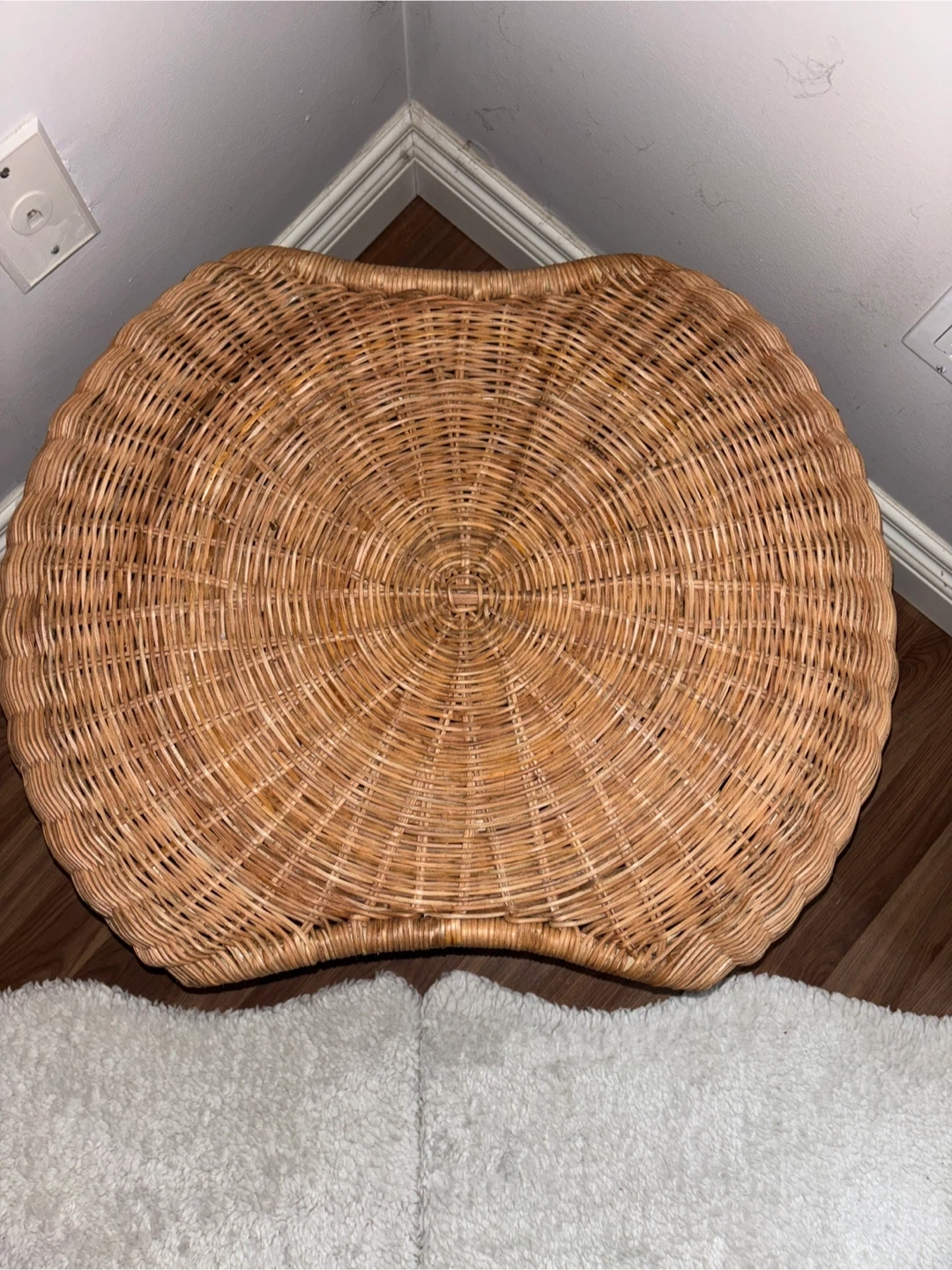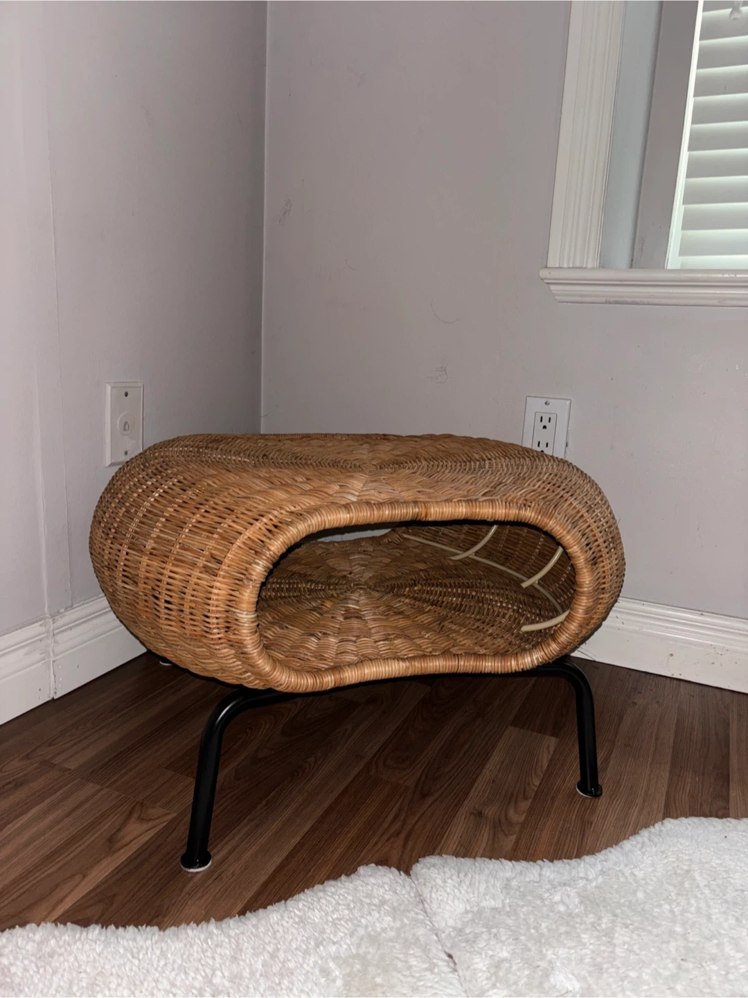 Selling a cute wicker ottoman or side table! It's in great shape and would look great in any room. It has a unique shape and is made of sturdy wicker material. Perfect for adding a touch of natural texture to your home decor