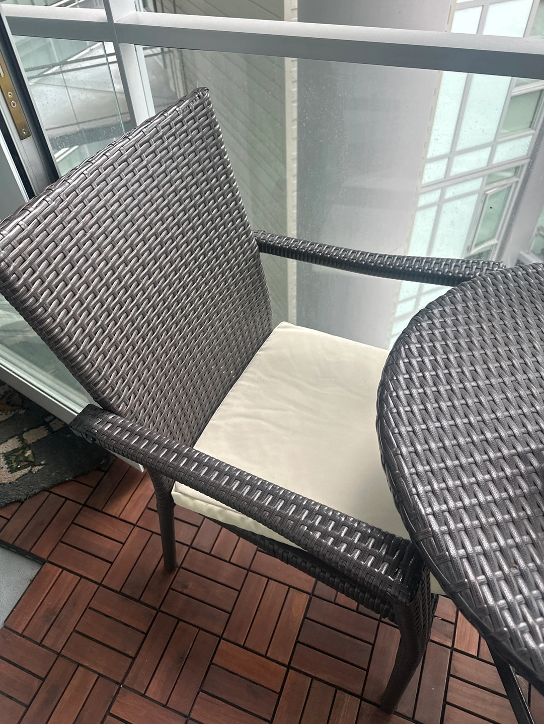 10Two chairs and a table, includes cushions. Excellent for small balconies or decks.
