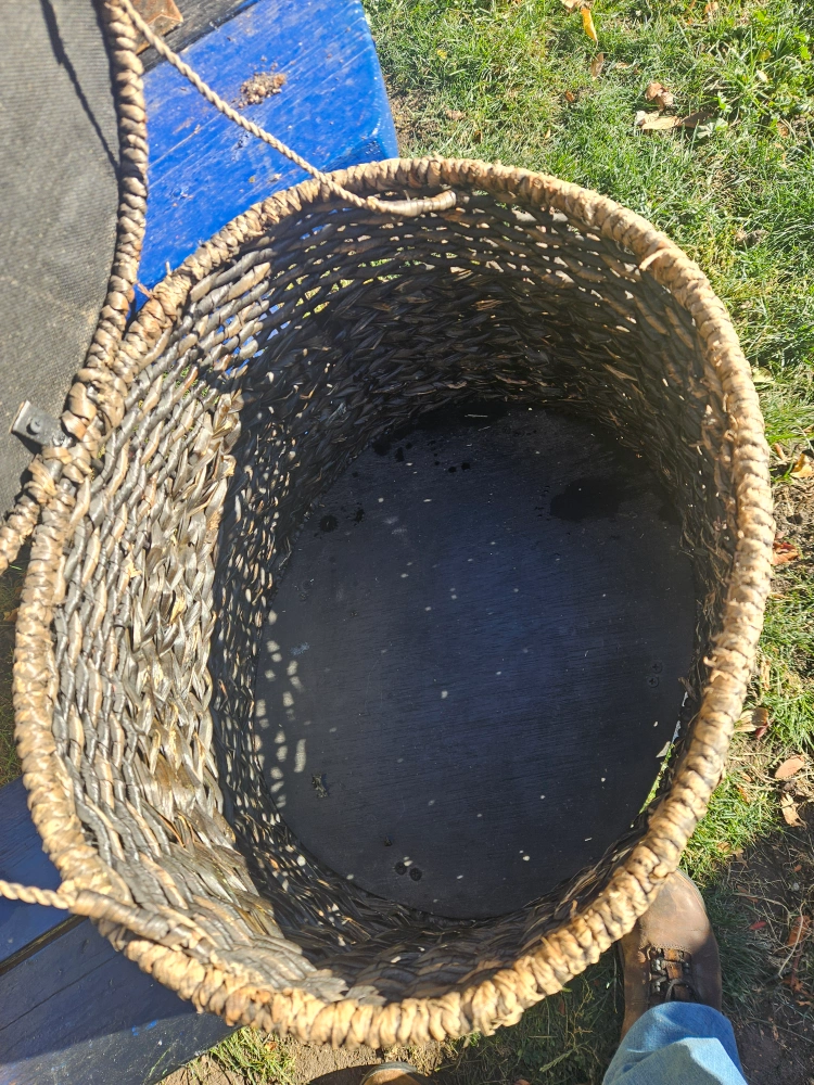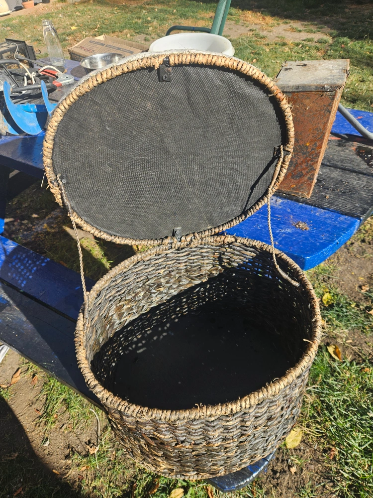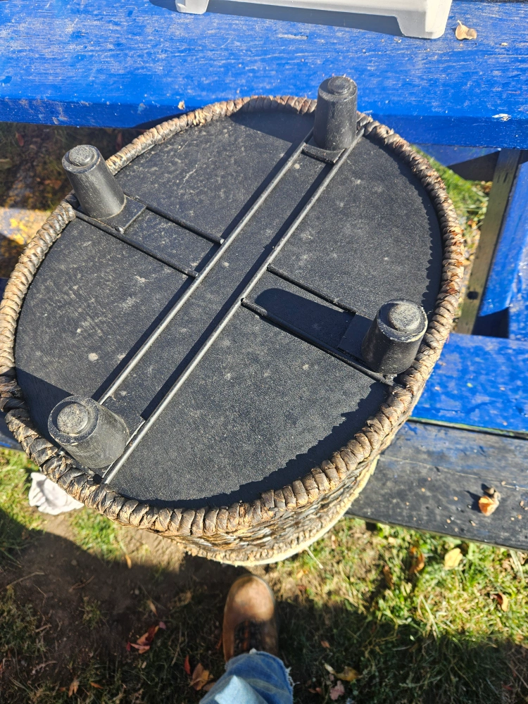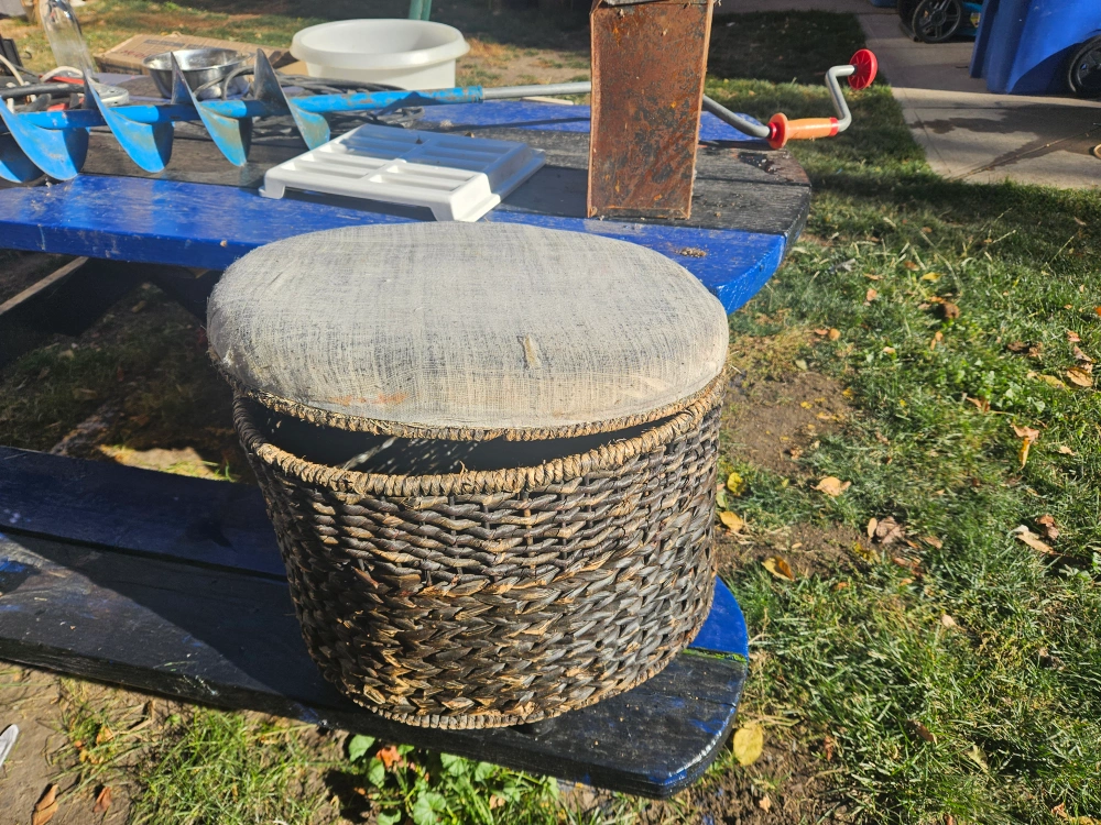 Selling a wicker storage ottoman. It's in good condition and would be a great addition to any room for extra storage and seating. small tear in fabric can be seen in pictures