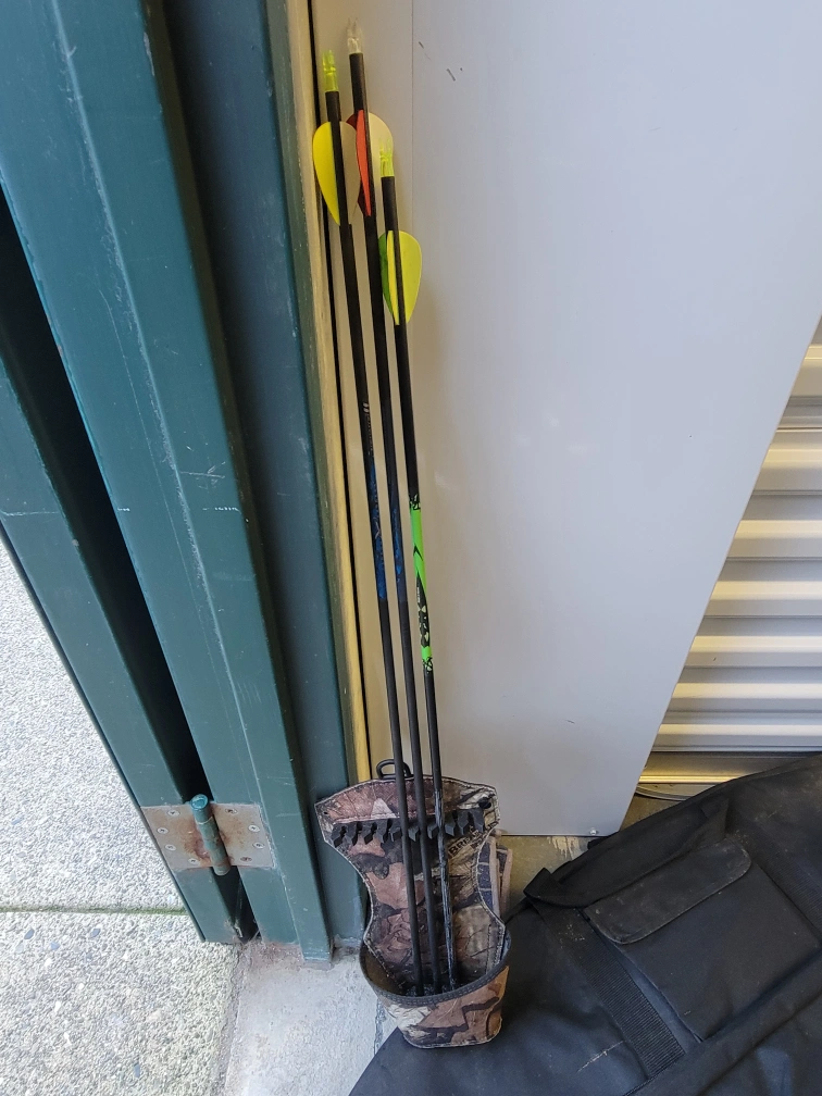 Selling a compound bow, perfect for target practice or hunting. It comes with a carrying case for easy transport and storage. Also included are a few arrows. Great condition and well-maintained. Comes with a scope and rubberized grip easier aiming.