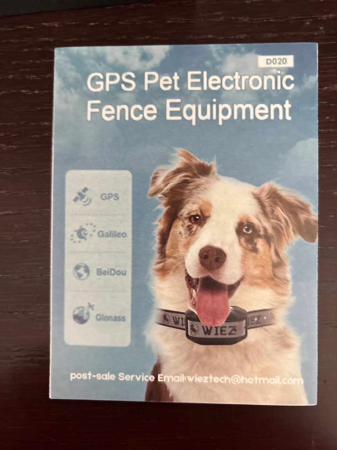 14GPS pet fence system. Includes receiver, charging cable, and mounting hardware. Uses GPS, GLONASS, BeiDou, and Galileo.