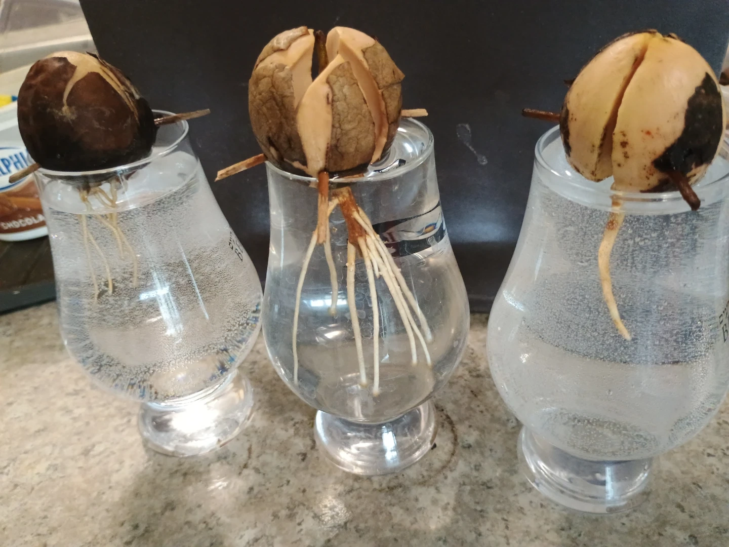 Start your indoor jungle today! I’ve done the hard work for you—these avocado seeds are already sprouted and thriving in water with toothpick supports.