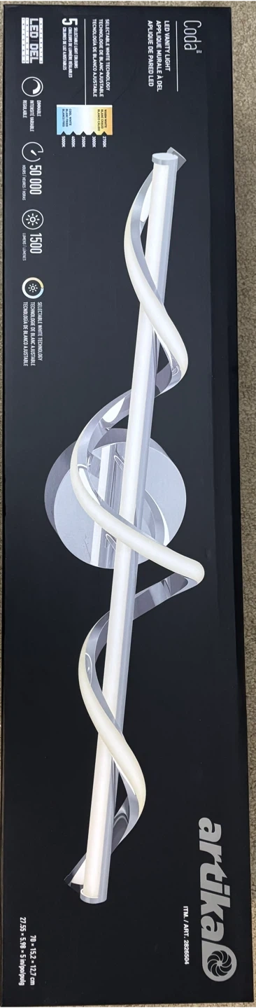 Selling brand new Artika Coda 3 LED vanity light. It's a stylish addition to any bathroom! This LED vanity light provides ample illumination with a modern twist. The box is included