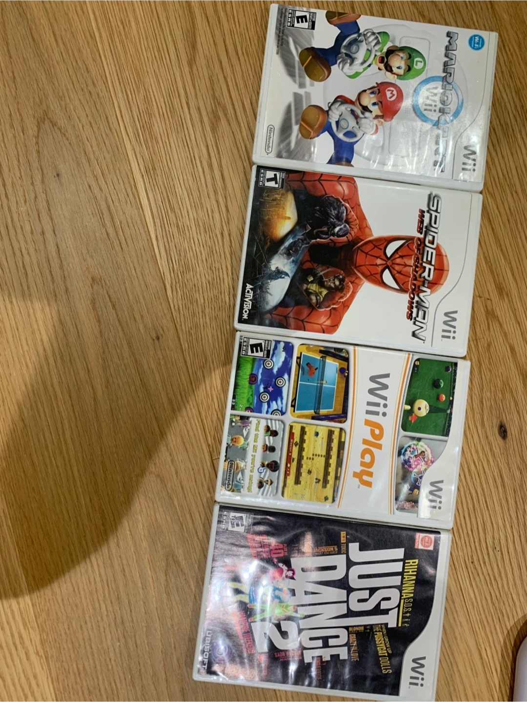 Just Dance: $10 Mario Cart: $25 Wii Play: $15 Spider-Man Web of Shadow: $20 All in Excellent condition, no damges or scratches. PICK UP OAKVILLE ONLY.