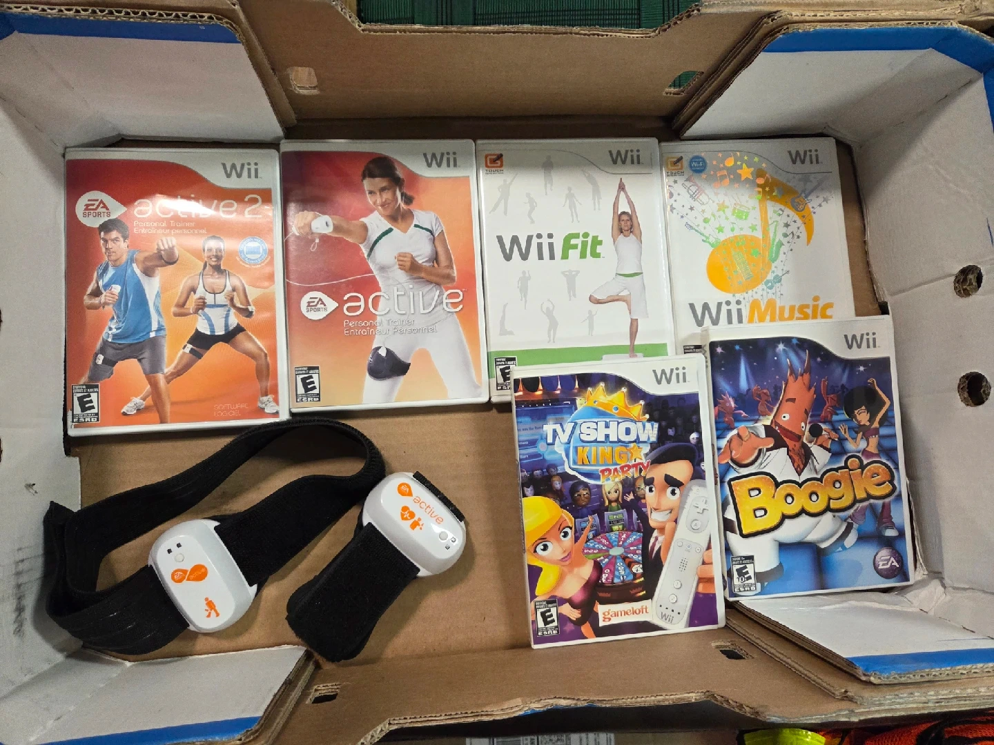 60Selling a bundle of Wii games! Includes: - EA Sports Active 2 Personal Trainer - Active Personal Trainer - Wii Fit - Wii Music - TV Show King Party - Boogie Also includes the Active accessories! $30 for all, or $5/game for pickup or add $5 for delivery.