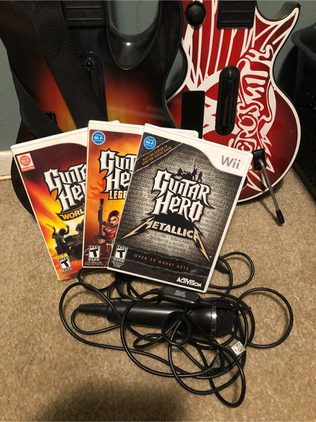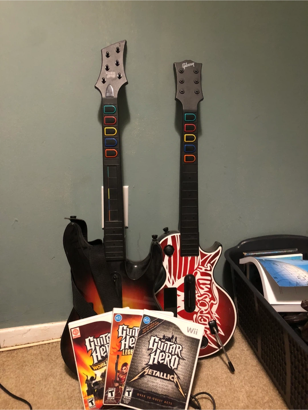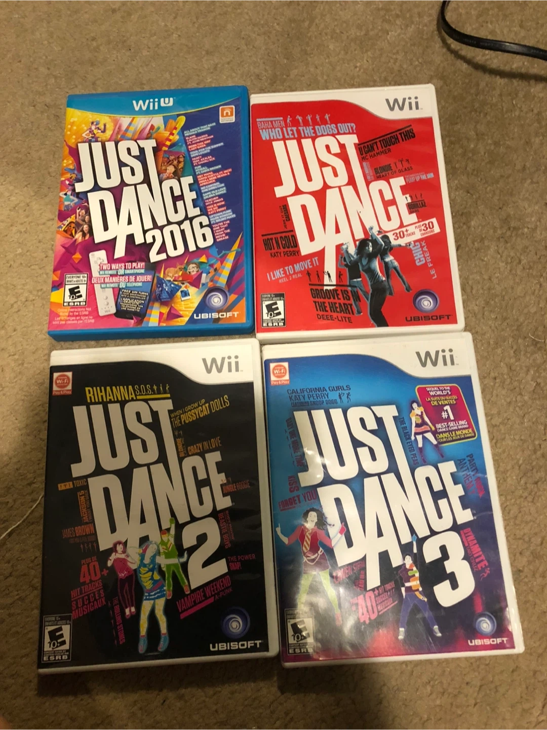 Selling a bundle of Wii games! Includes Just Dance 2016, Just Dance 2, Just Dance 3, Just Dance, Guitar Hero World Tour, Guitar Hero Legends of Rock, and Guitar Hero Metallica. Perfect for family fun or a nostalgic trip back to the Wii days