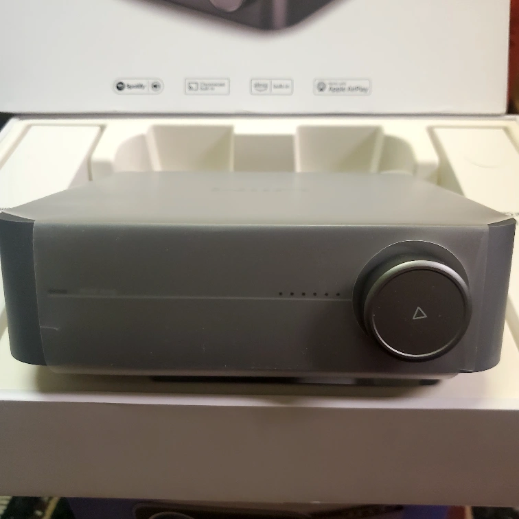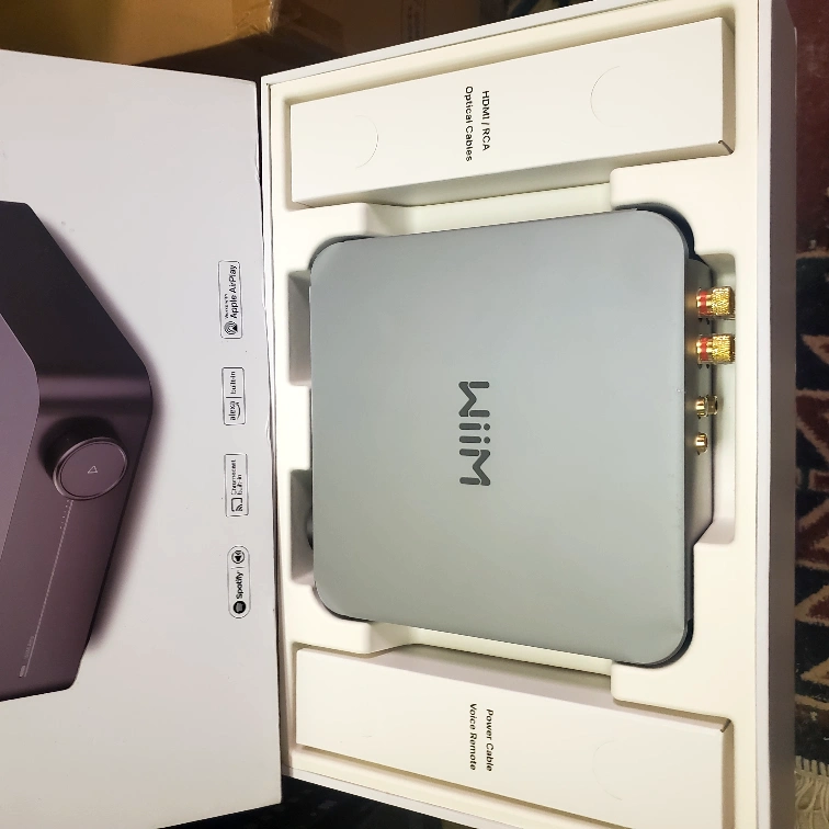 Selling a WiiM Amp Streamer Amplifier that's in excellent condition! It comes with the original box and all included components such as HDMI, RCA, optical cables, power cable, and voice remote. Stream elegance and amplify brilliance with this great device!
