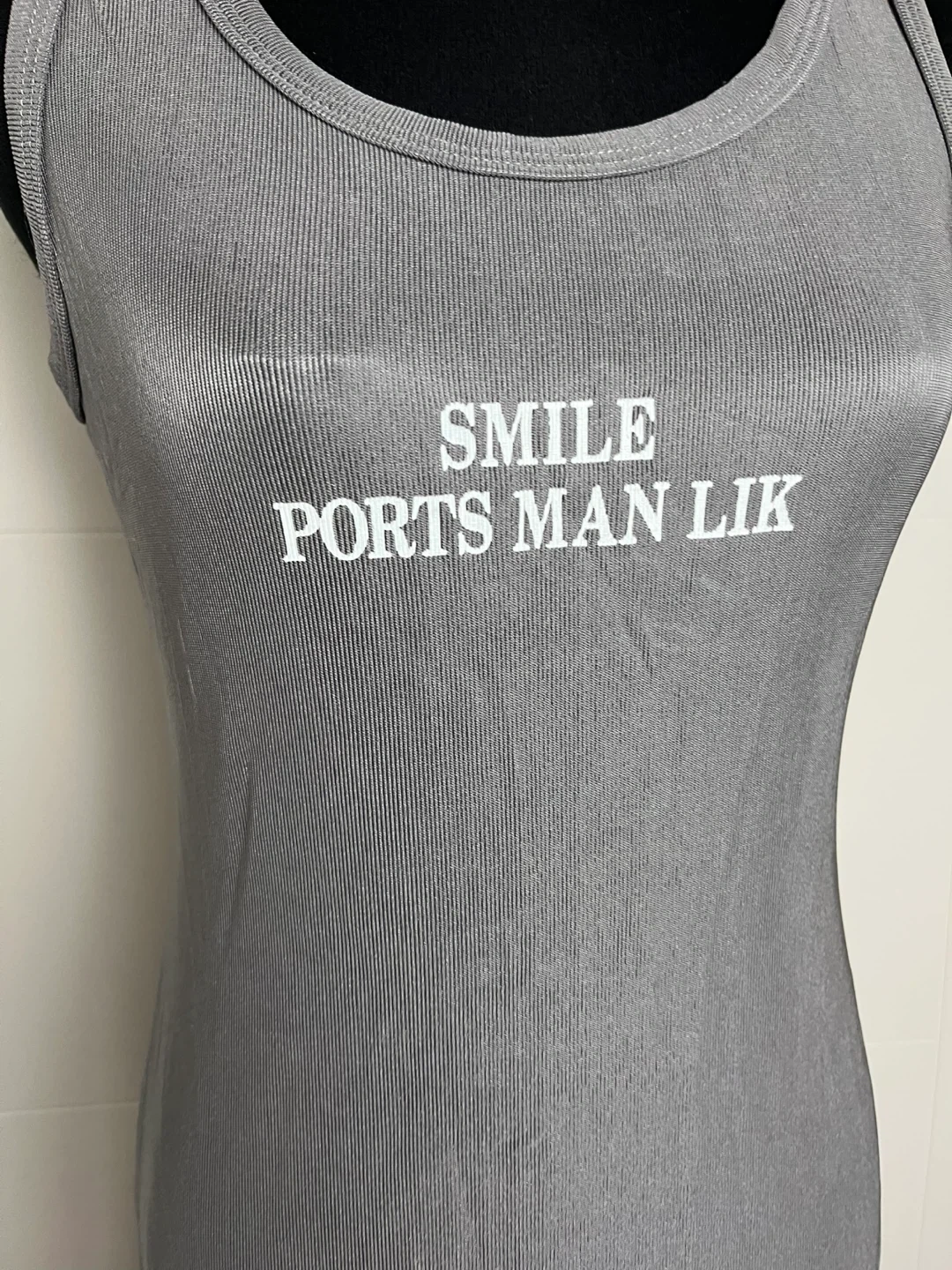 Selling a cute grey dress from 2S The Studio 235! It features the text "SMILE PORTS MAN LIK" on the front. It's a size small and in great condition!