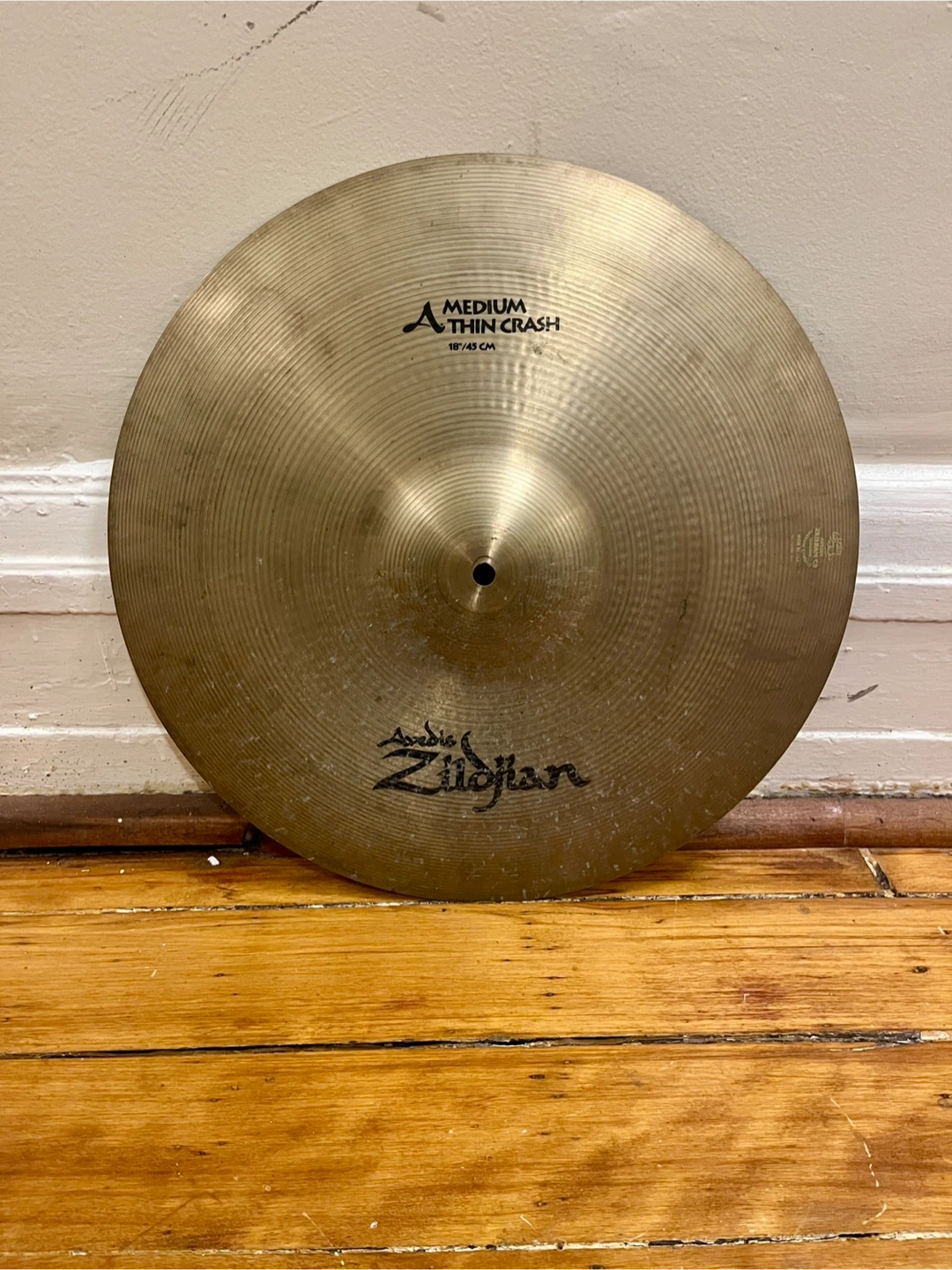 18 inch Avedis Zildjian Medium Thin Crash. Weighs 1477 grams, I would call this a thin not a medium thin, it crashes easily and beautifully, and also rides nicely, would make a great crash ride for a one cymbal setup. No cracks, has a slight keyhole and some minor fleabites around the edge, priced accordingly.