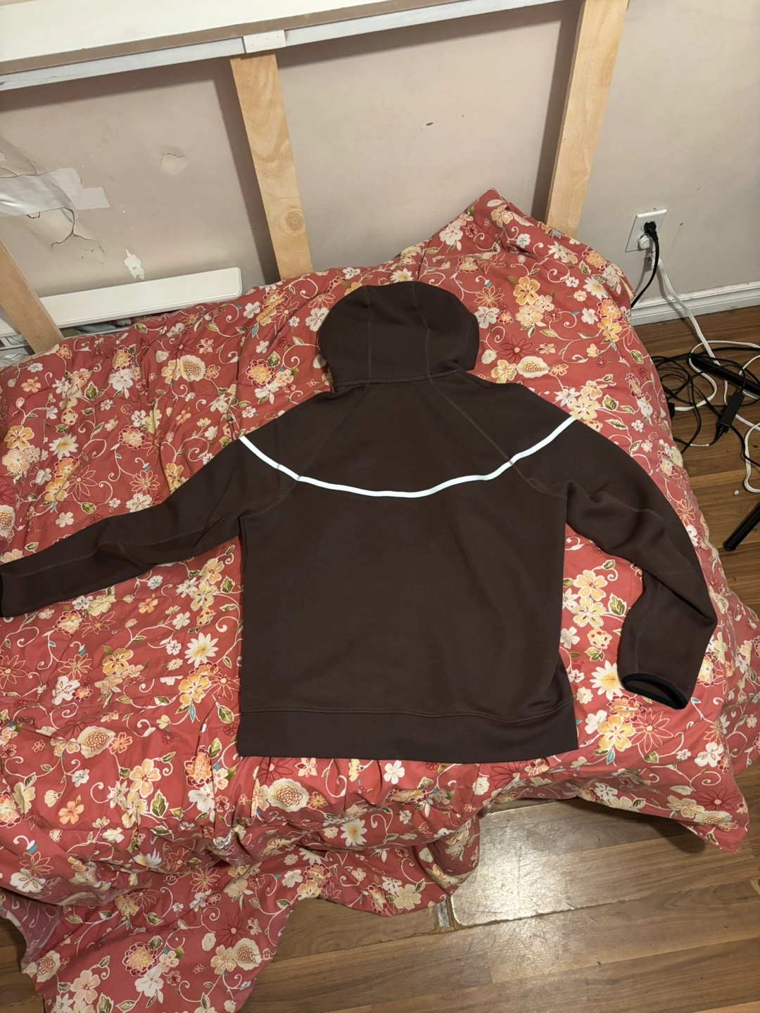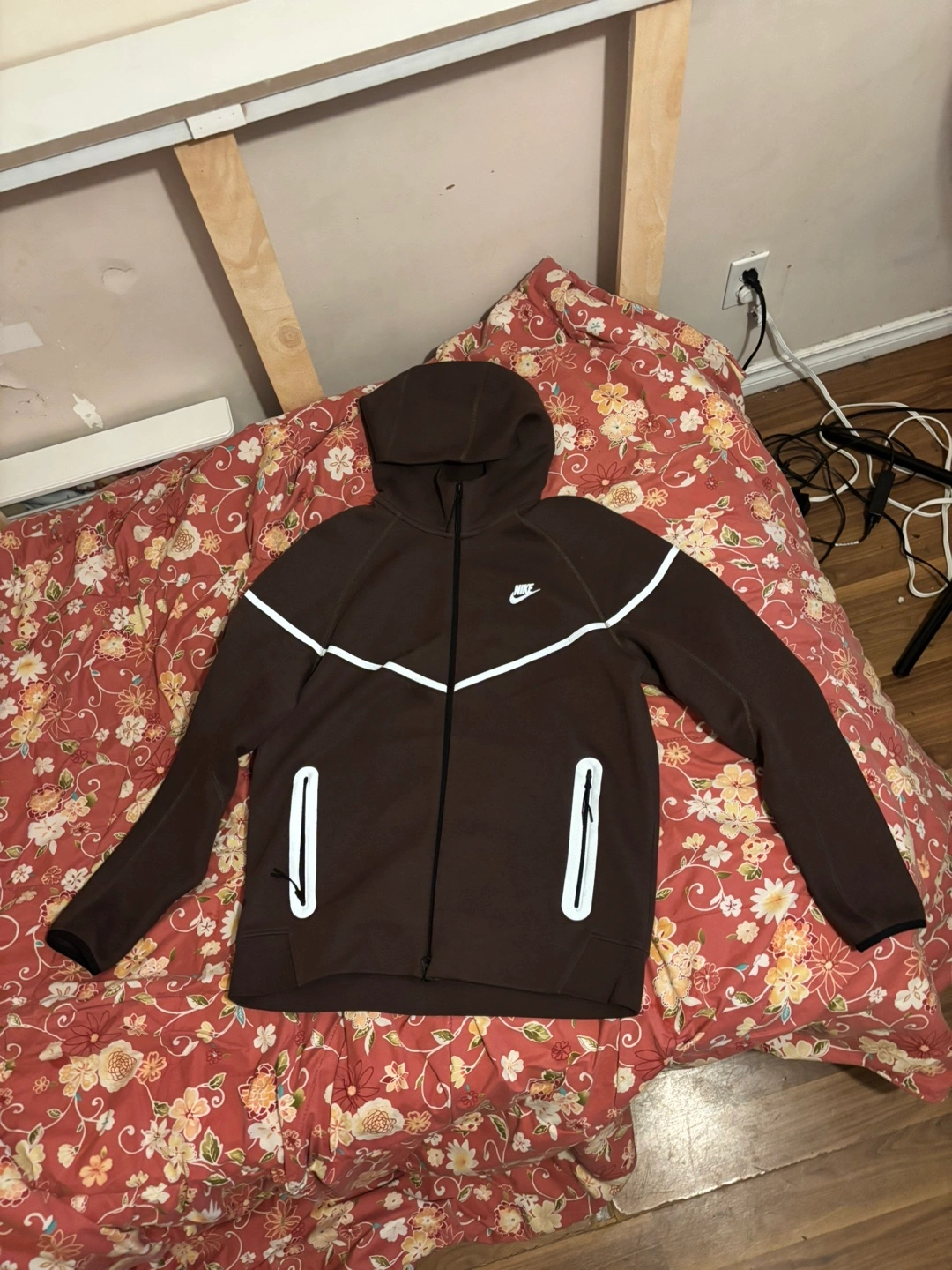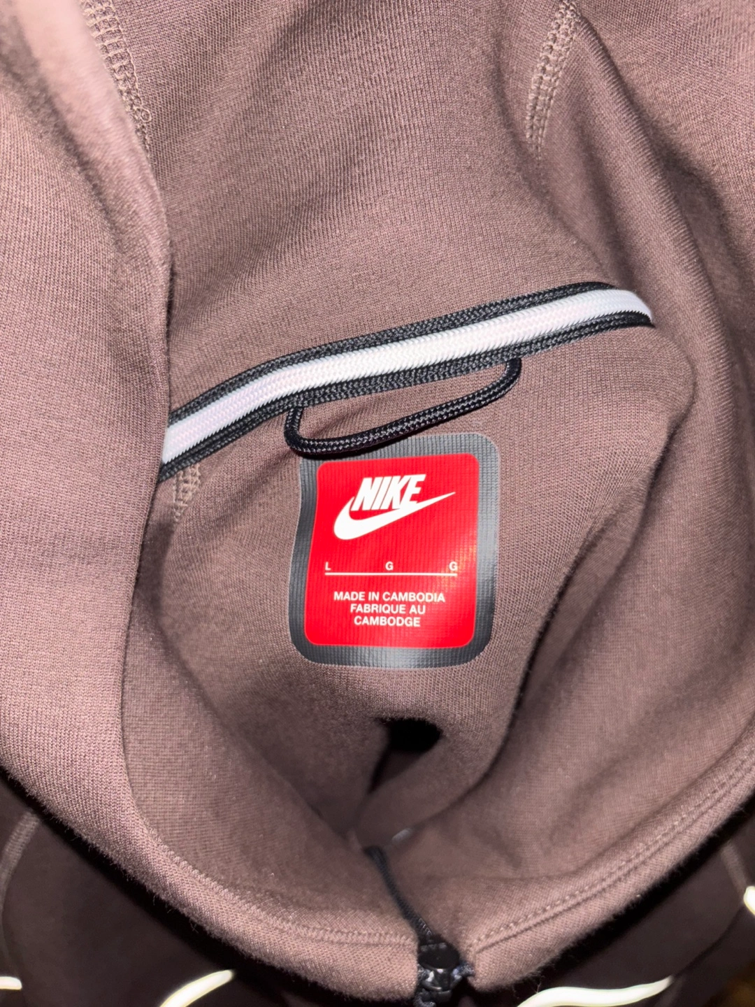 Brown Nike Tech Fleece hoodie. Full zip. Reflective detailing. Men's size.