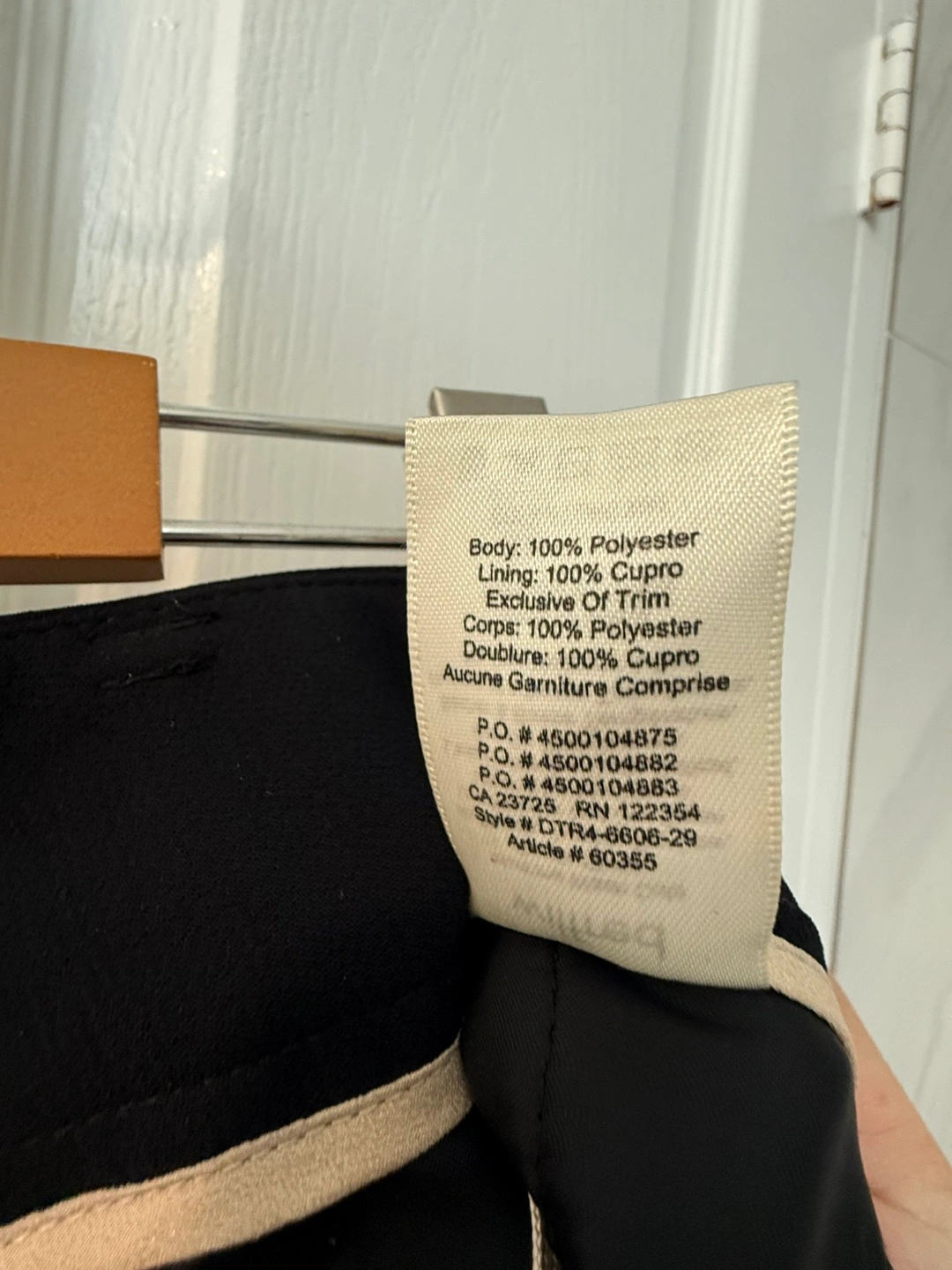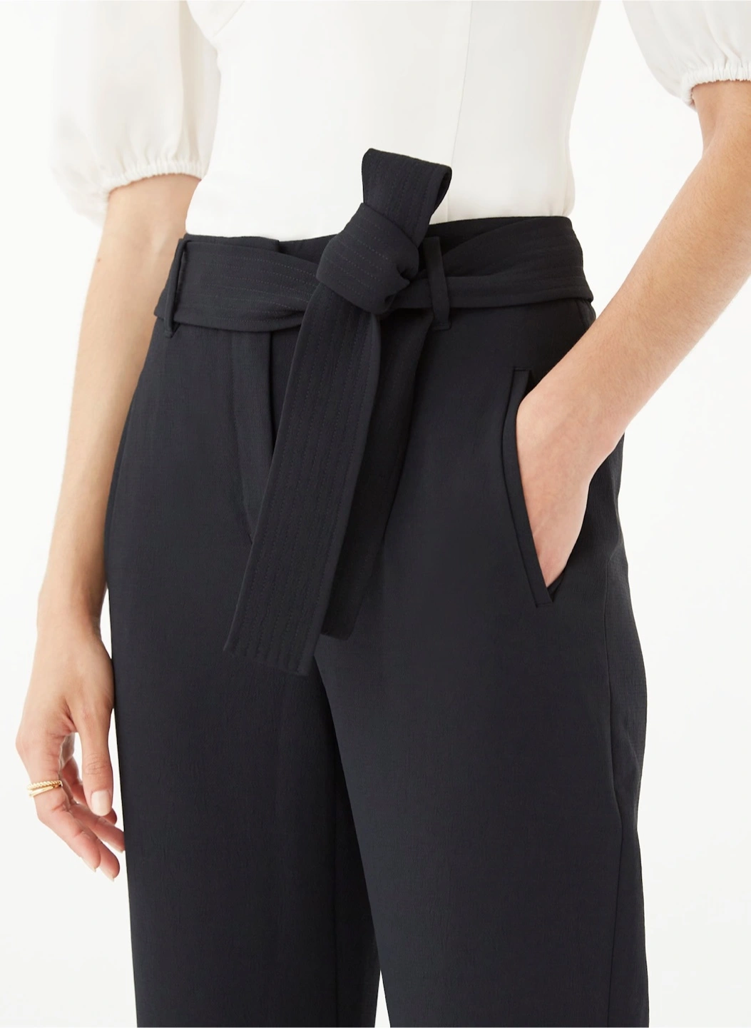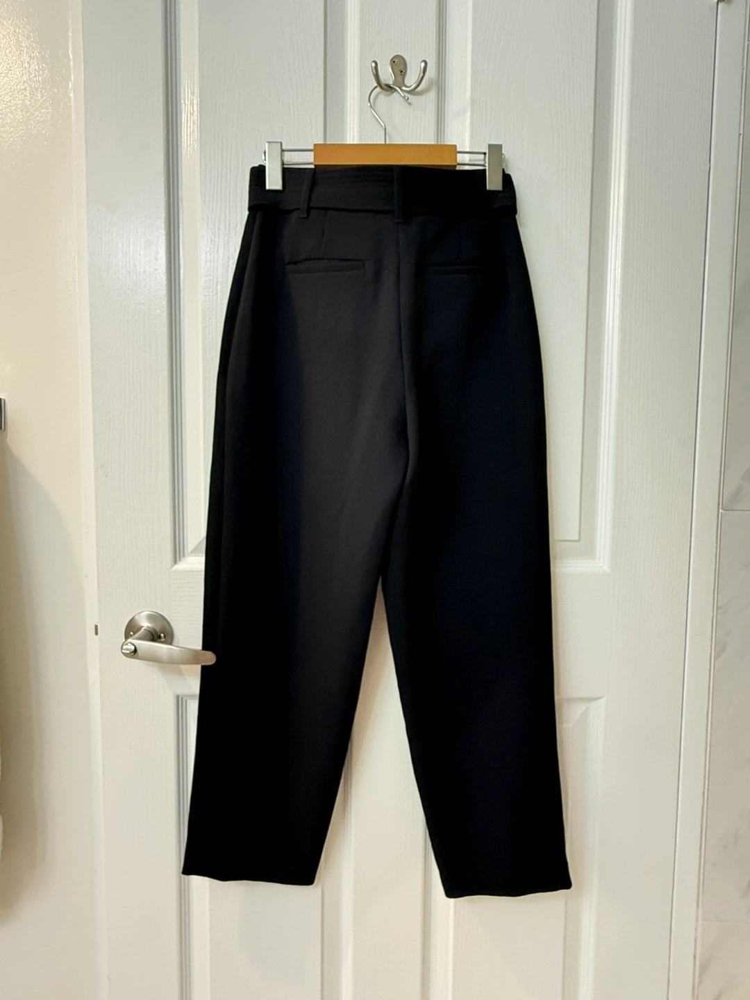 Experience the sophistication of Wilfred's black tailored trousers, crafted for a timeless and versatile look. These trousers feature a classic straight-leg cut, perfect for professional or formal settings. Made from a high-quality fabric, they offer a sleek and polished appearance. These are high-rise pants with a removable tie belt, welt pockets and a relaxed fit. They're made with Crepette™ — Wilfred’s iconic crepe fabric famous for its subtle texture and breezy, effortless drape. It’s sourced from an innovative Japanese mill. Features Straight waistband Darted back for shaping Zip fly with hook-and-bar closure Materials & Care Origin: Fabric from Japan Content: 100% polyester Care: Machine wash Rise: High Leg: Straight Length: Ankle — Intended to hit at the ankle Inseam: Size 4 is 27" — Inseam varies by size Height: Regular — Designed for heights around 5'3" to 5'7" On average, customers say it fits slightly smaller Original Price: $148 CASH AND PICKUP ONLY