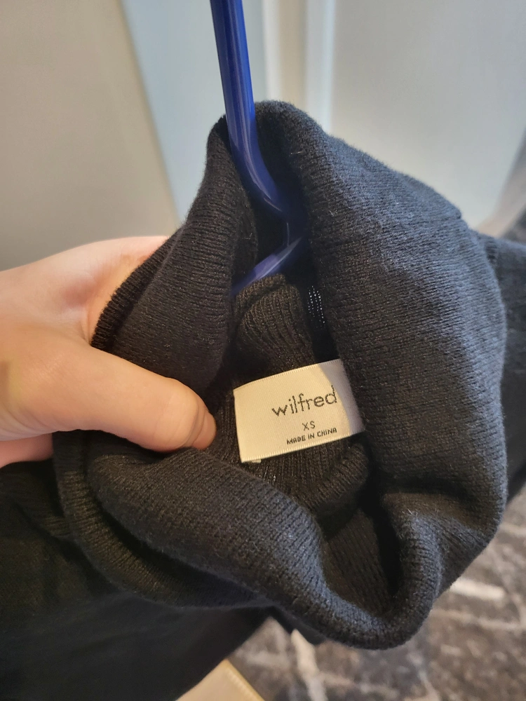 28Aritzia Wilfred black turtleneck sweater in size XS. The sweater is made of a soft, comfortable material and has a flattering fit.