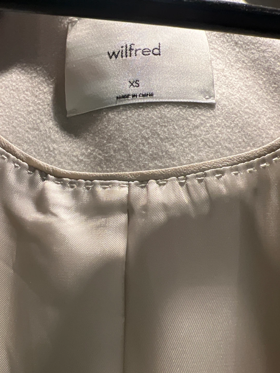18Selling a Wilfred coat in size XS! It's a beautiful beige colour and in great condition. Perfect for spring or fall weather. It’s very stylish and comfortable!