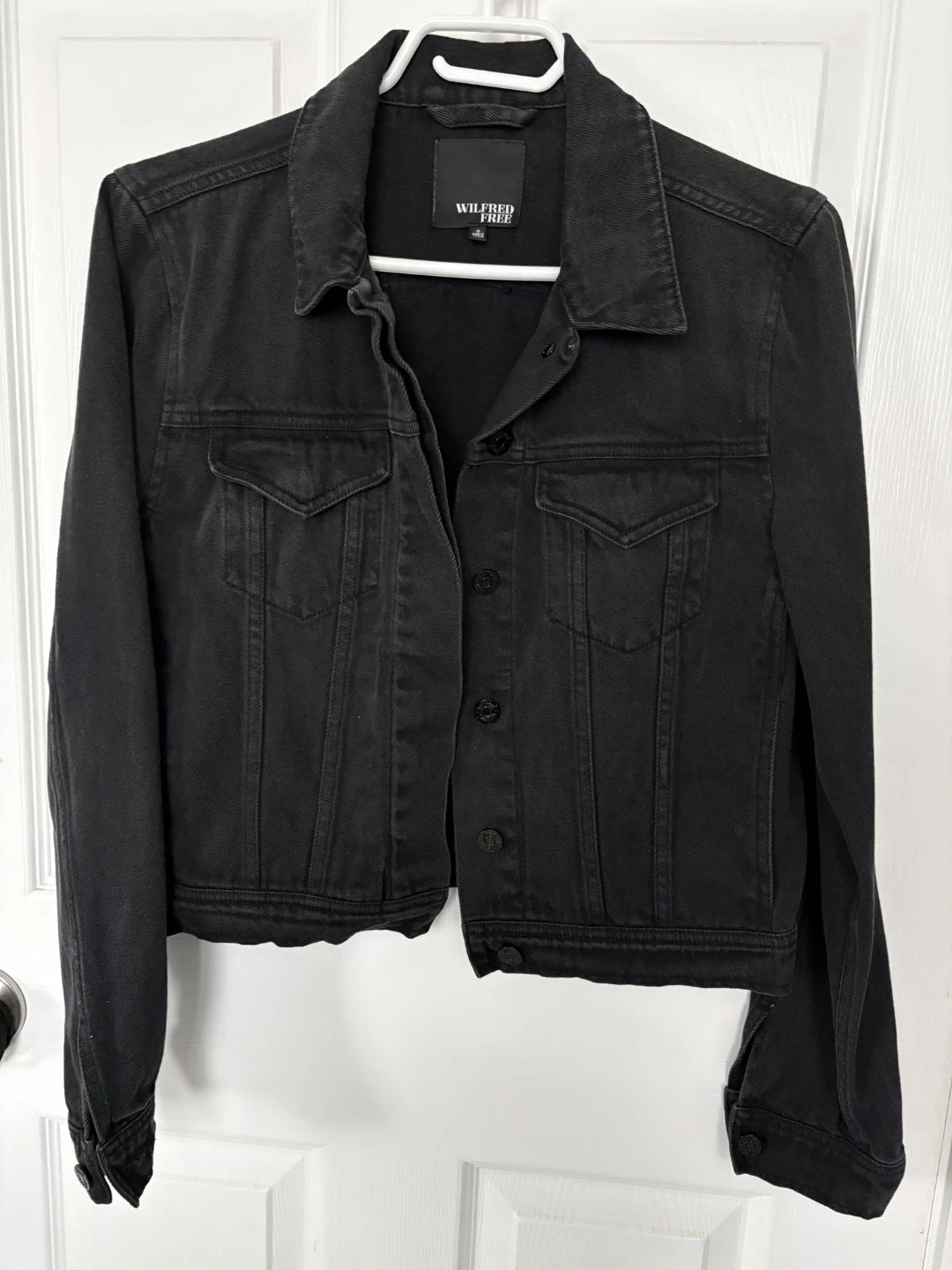 114Selling a Wilfred Free woman's denim jacket in black. It's a size medium and in good condition!