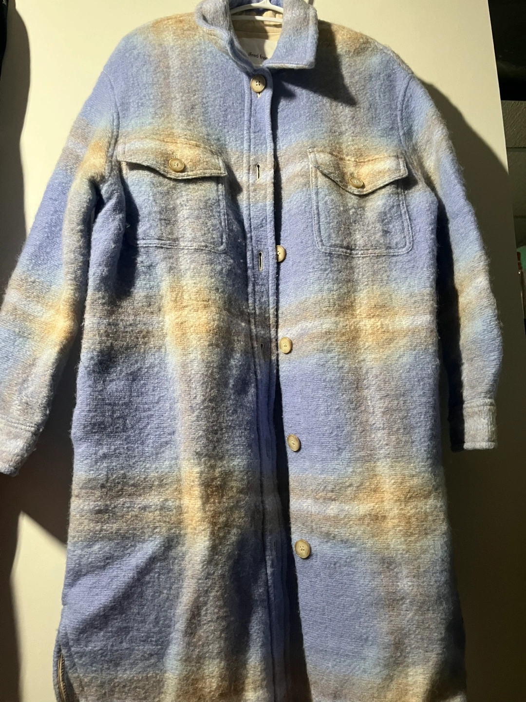 Button-up jacket in soft material. Features large pockets and a collar. Perfect to cozy up in on a cool evening.