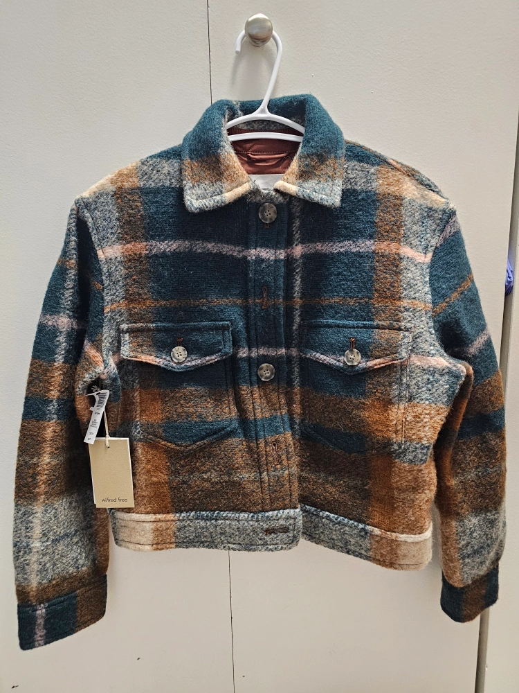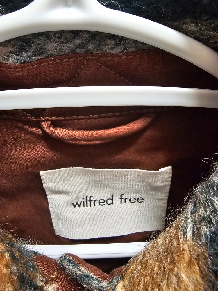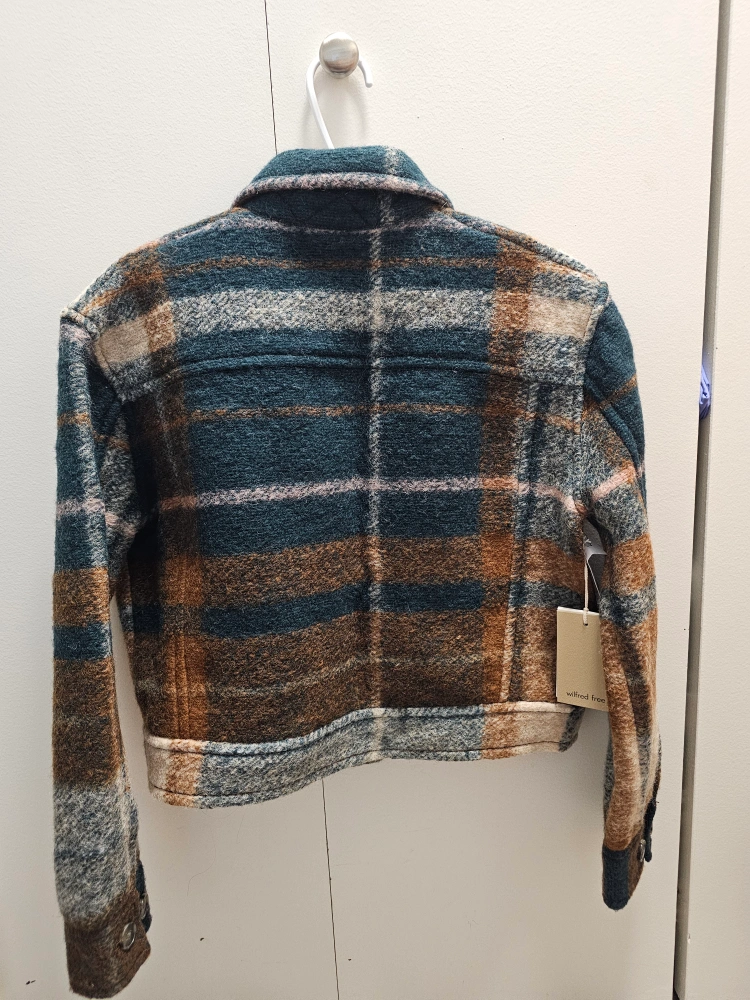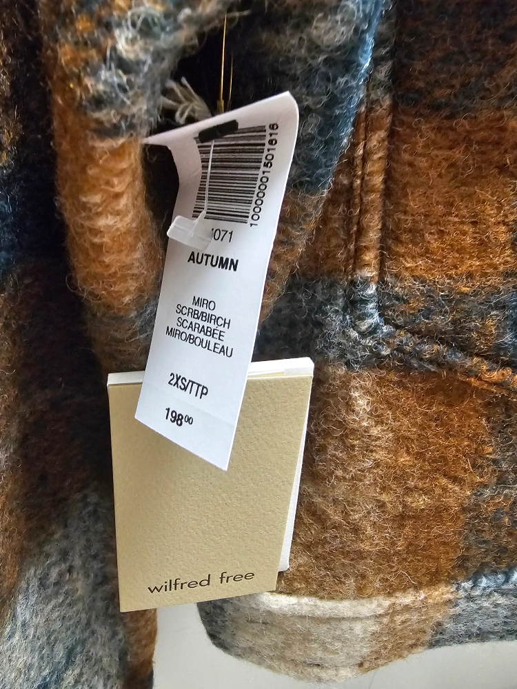 Selling a Wilfred Free Miro jacket in size 2XS/TTP. The jacket is in excellent condition and features a stylish autumn plaid pattern.