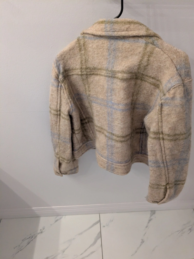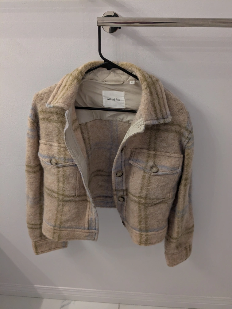 Cozy Wilfred Free Wool jacket in a lovely beige plaid pattern! pickup only cash only please