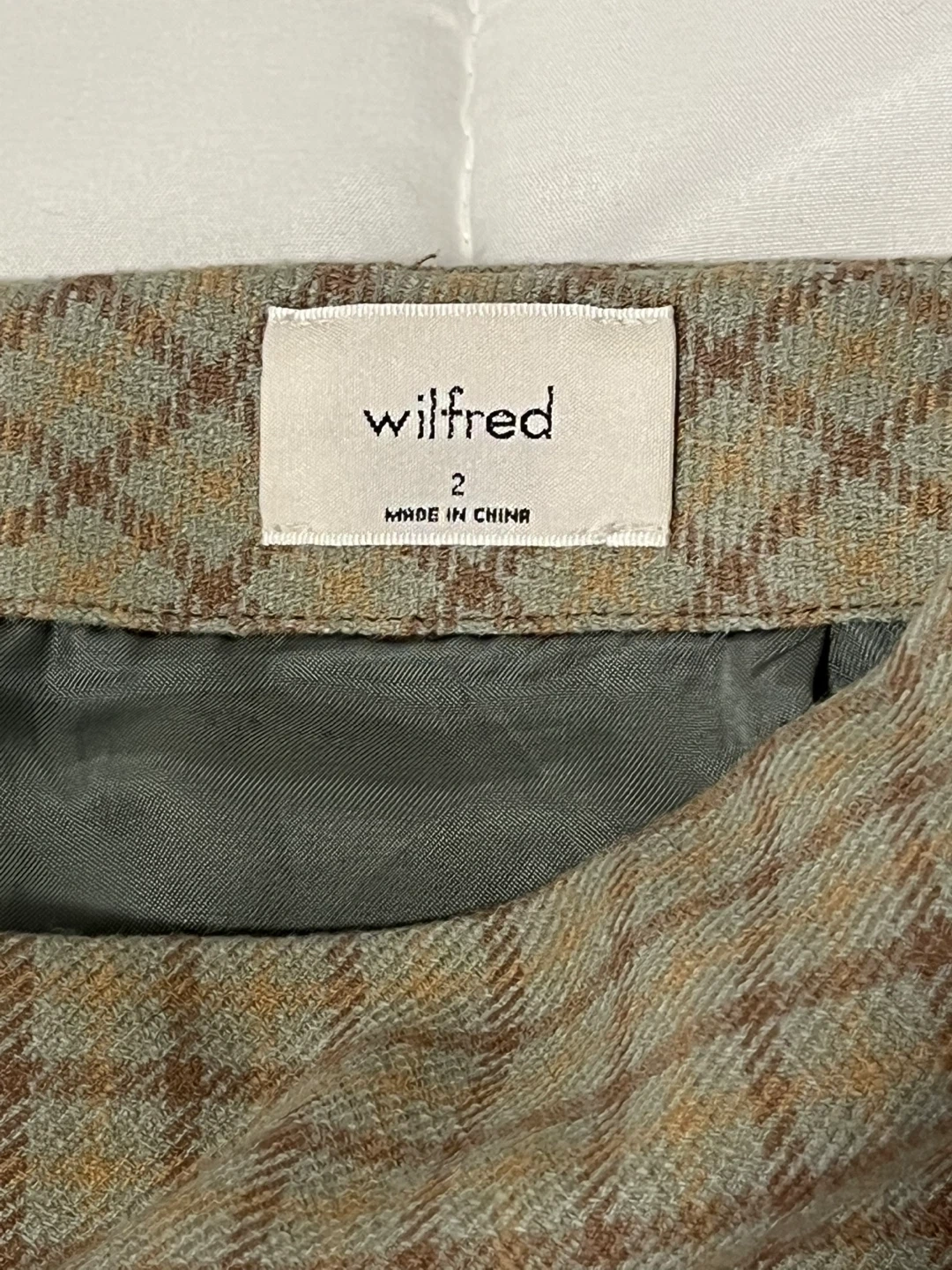 Selling a cute Wilfred mini skirt in a plaid pattern! It's in great condition. Size 2.