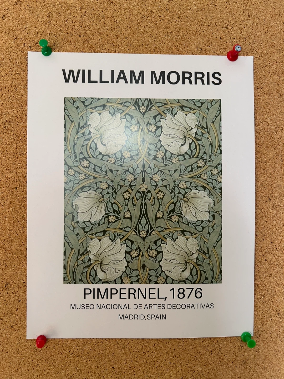 723William Morris print featuring the Pimpernel, 1876 design. From the Museo Nacional de Artes Decorativas in Madrid, Spain. Great for adding a touch of classic art to your space! 8”x 10”. Free with purchase of $5 or more!