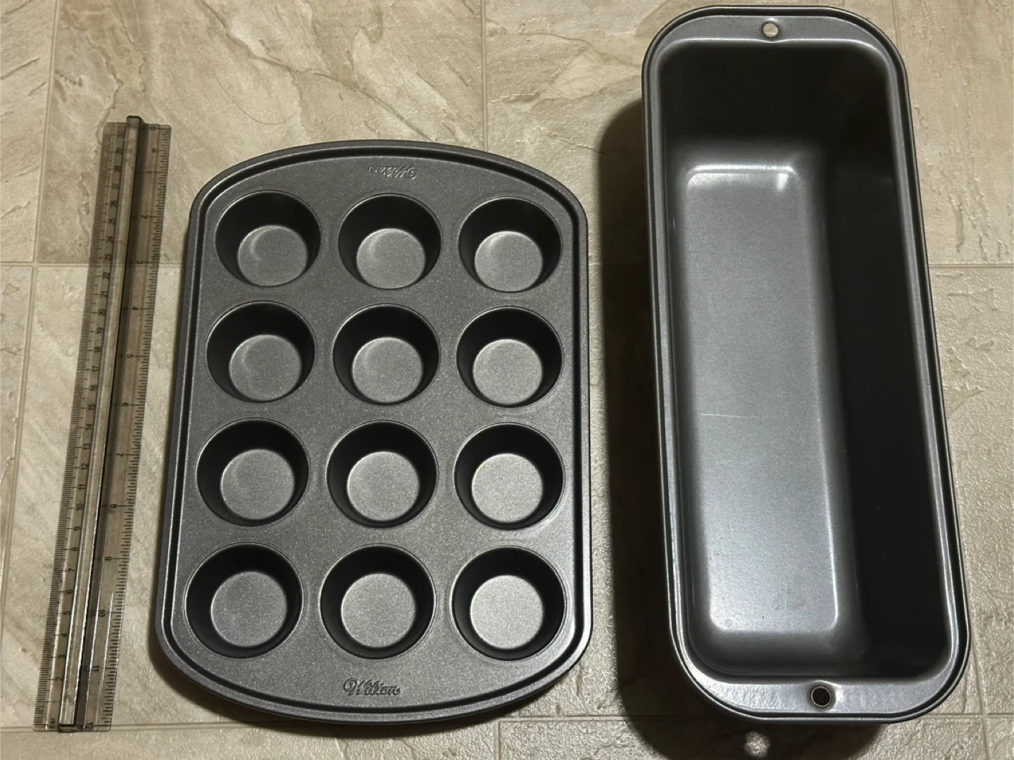 51Selling a baking set that includes a mini muffin pan (12 mini muffins) and a loaf pan. Both are in like-new condition with no scratches. Perfect for muffins, cupcakes, bread, and meatloaf!