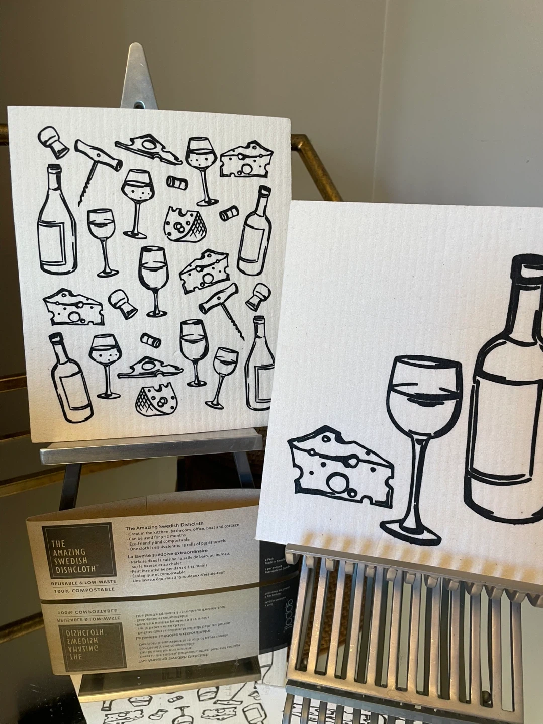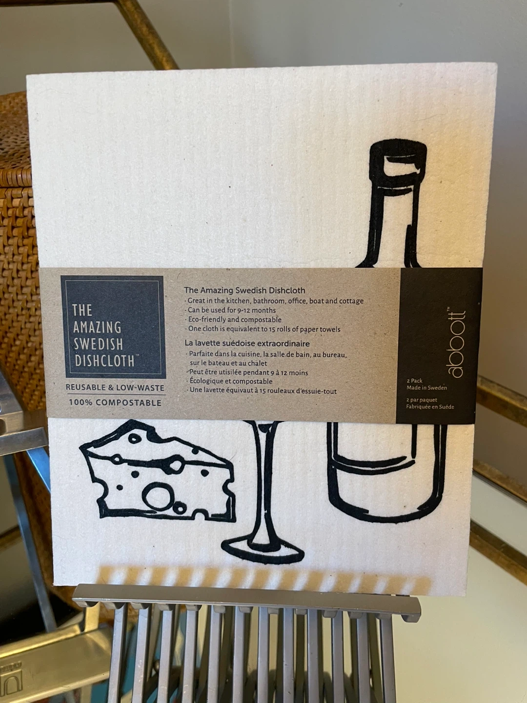 284I'm selling a 2-pack of The Amazing Swedish Dishcloth by Abbott! These reusable and low-waste dishcloths are 100% compostable. They're great for use in the kitchen, bathroom, office, boat, or cottage. Each cloth is equivalent to 15 rolls of paper towels, making them eco-friendly and economical. They can be used for 9-12 months! . Located in Osborne Village with easy accessible driveway for pickup . Selling a set of 2 wine & cheese patterned Swedish Dishcloths. Comes banded with original wrap perfect for a hosting gift . 6.5" x 8" 16.50 x 20.32 cm set of two eco-friendly cellulose cotton 100% biodegradable ultra absorbent machine washable replaces up to 15 rolls of paper towel lasts for 12 months great in the kitchen, bathroom, office, boat, and cottage you may also like to see more in my other listings as well. Regular retail is 12.95 for these sets Accepting etransfer for guaranteed hold and cash transactions are FCFS Please.