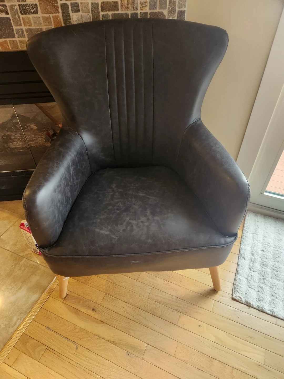 304Selling a wingback accent chair in dark grey. It's in good condition and would look great in any living room or bedroom. The chair features a classic wingback design with a comfortable seat and backrest. The legs are made of wood, adding a touch of elegance to the overall look
