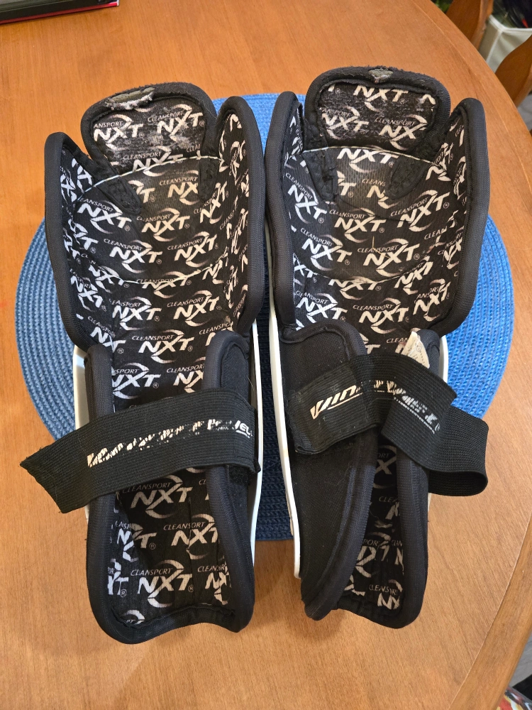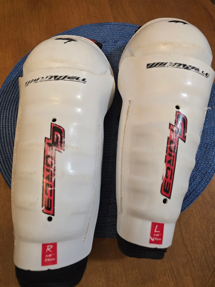 Selling a pair of WinnWell GForce hockey shin guards in size 10". They're in good condition and ready to hit the ice! The size is 10 inches or 25cm.