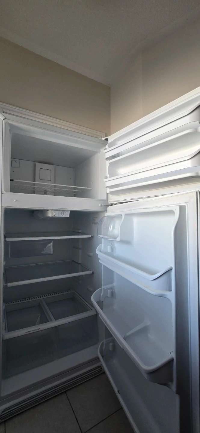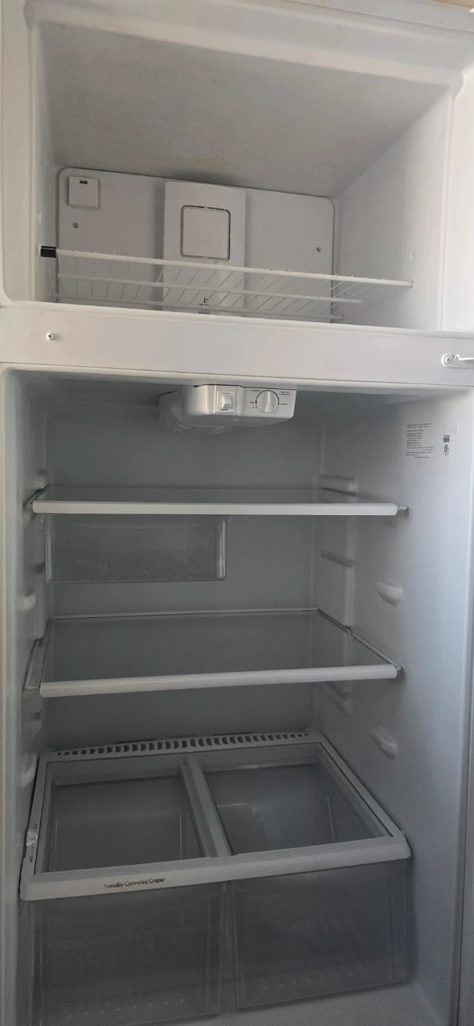 Fully functioning White Kenmore top freezer/ refrigerator. It's been cleaned and is ready for a new home. Humidity controlled crispers.