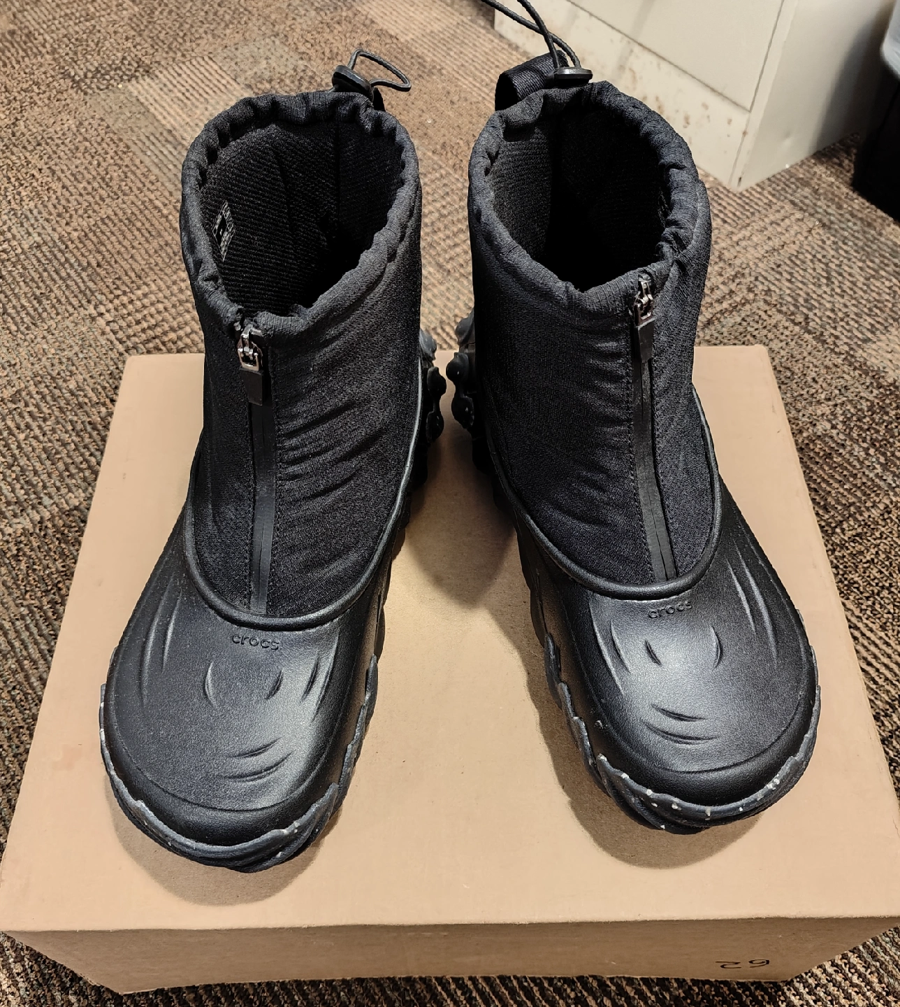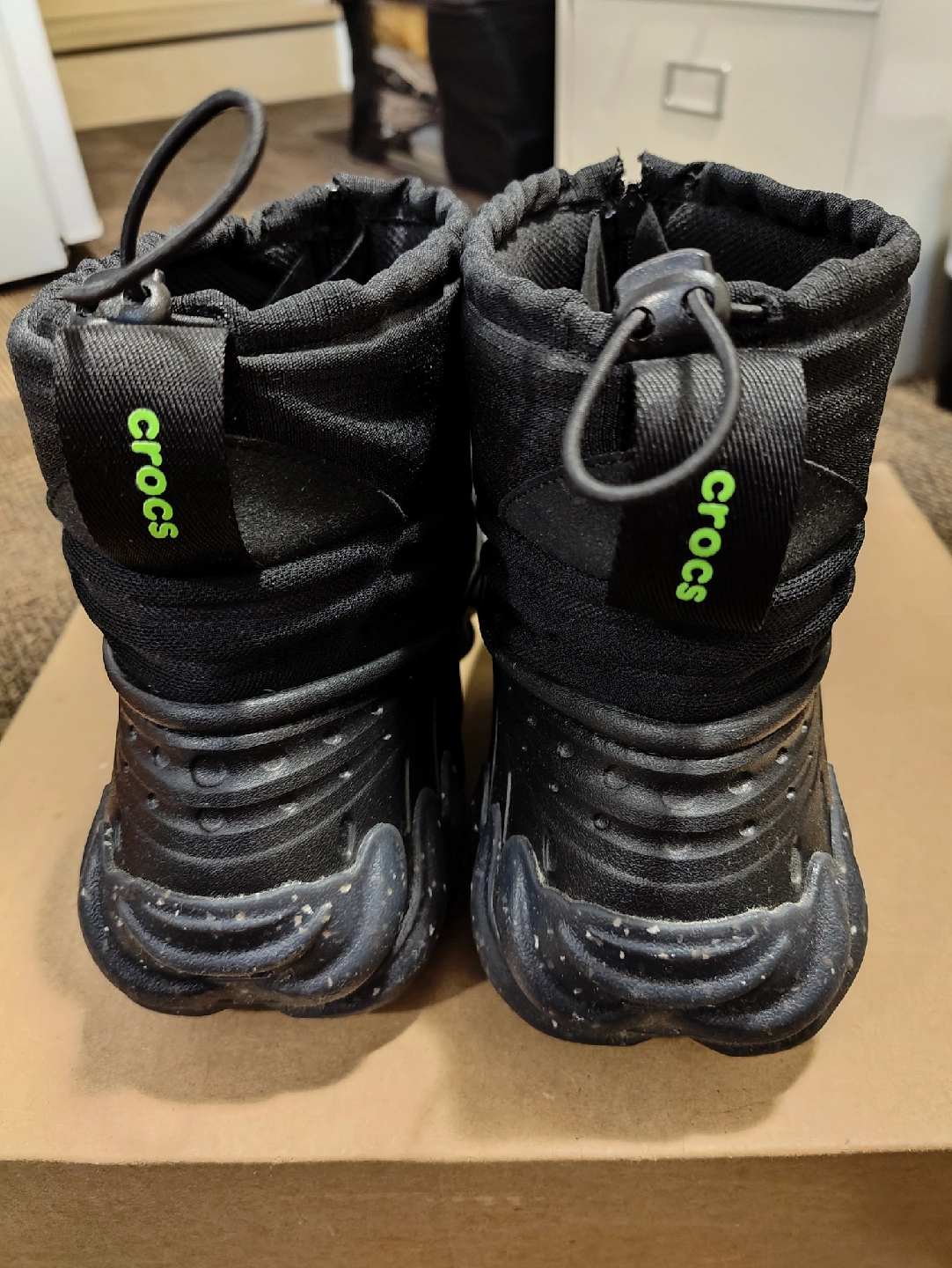 417Crocs Echo Boots size 14 All weather Boots Used only a couple of times. Selling because the size is a bit bigger like a size 15. white spots u see is the design. Selling as it is
