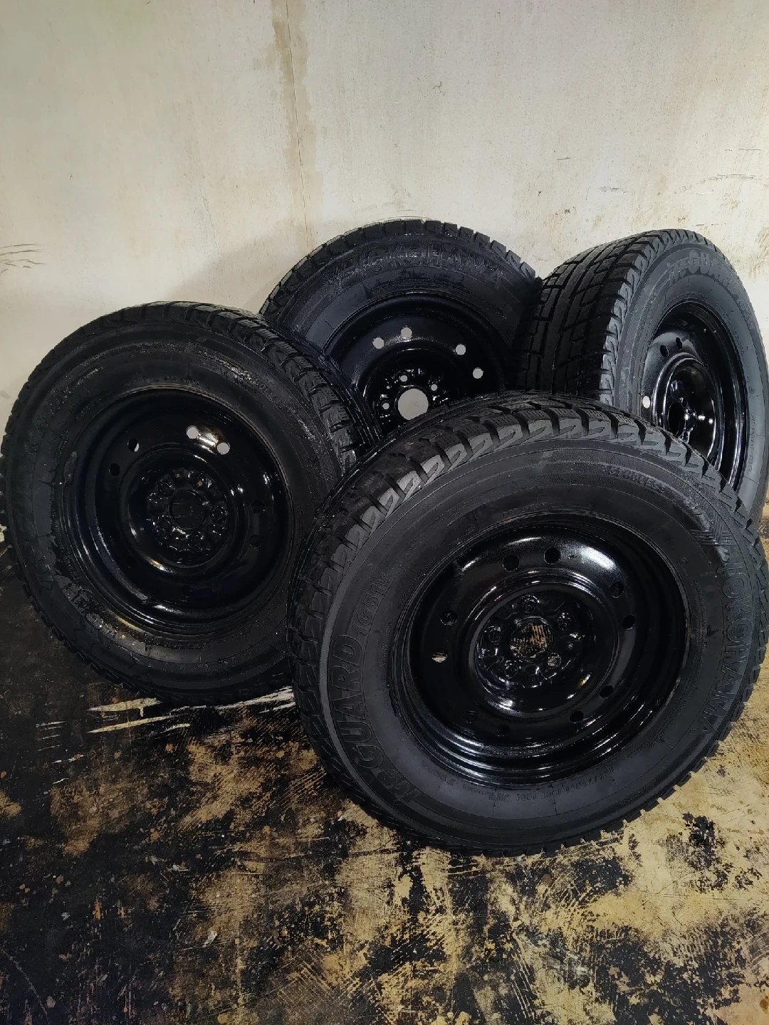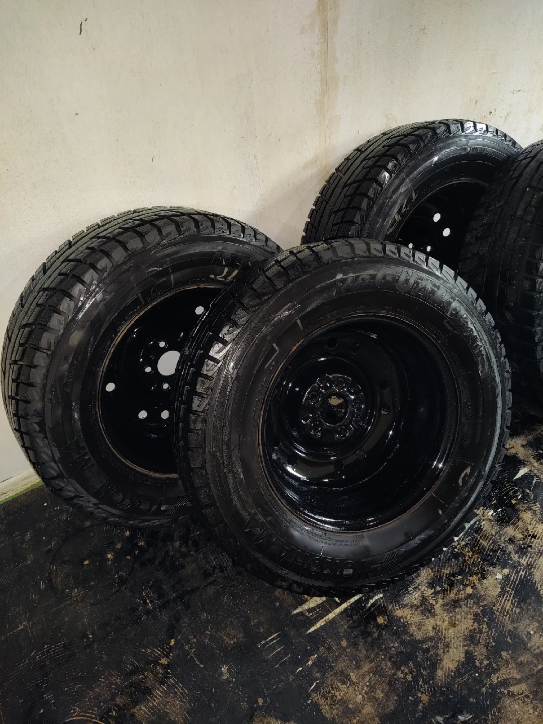 74Hi everyone I got 4 rims and tires that was off my 2011 Rav 4 also fits most Toyota cars 5x114,3 bolt pattern . Used for 1 winter for a month and I sold my car for a bigger one . They are very good tires and rims Rims are freshly painted with trem guard rust paint to prevent rust .wheels are computer balanced . The size is 235. 70 16.